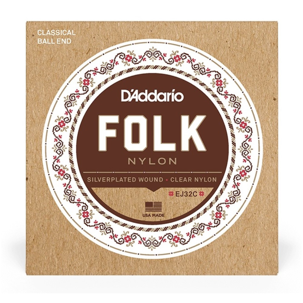 D'Addario EJ32C Silver-Wound/Clear Nylon Classical Guitar Strings, Normal Tension Ball End