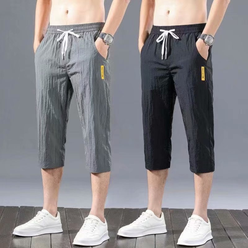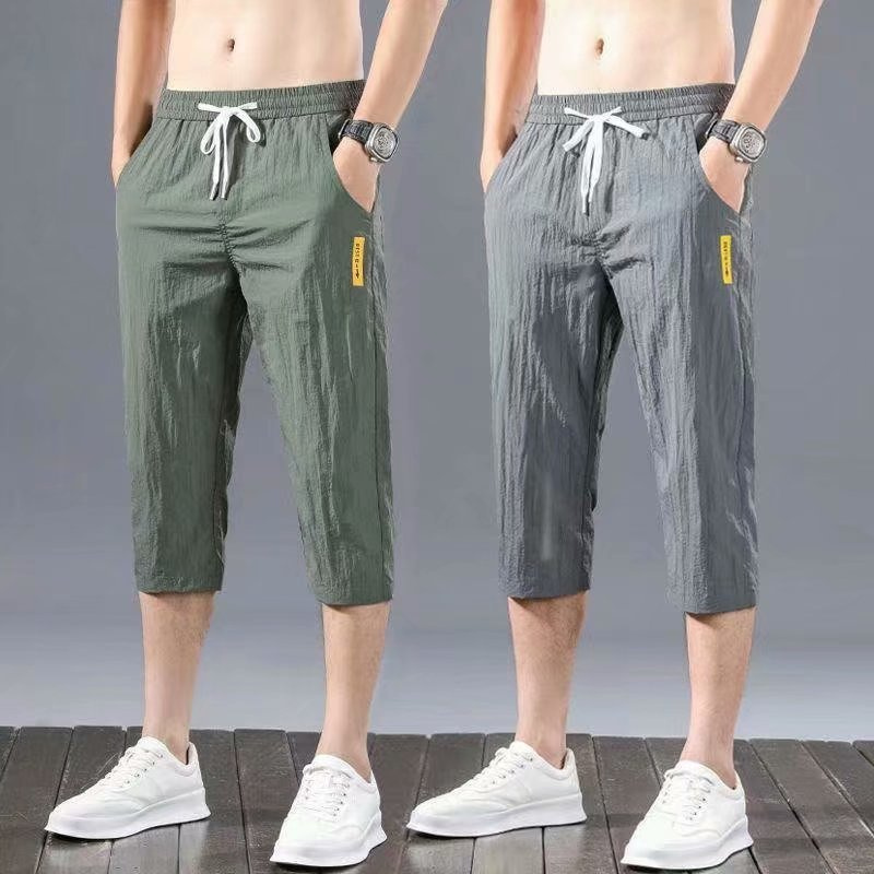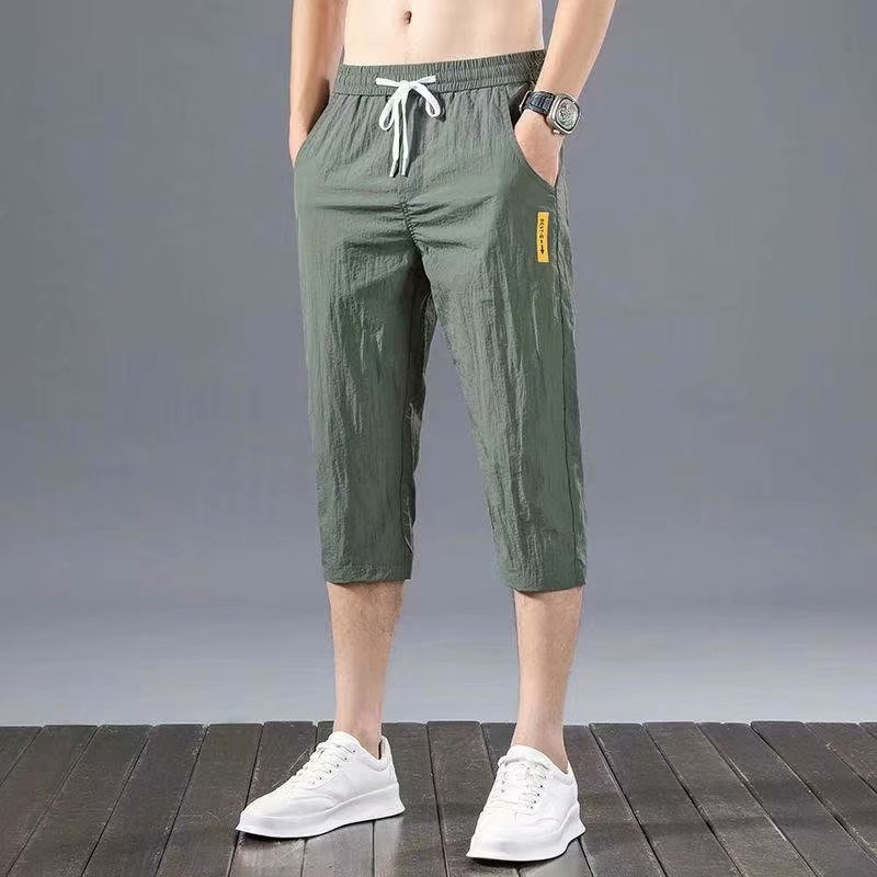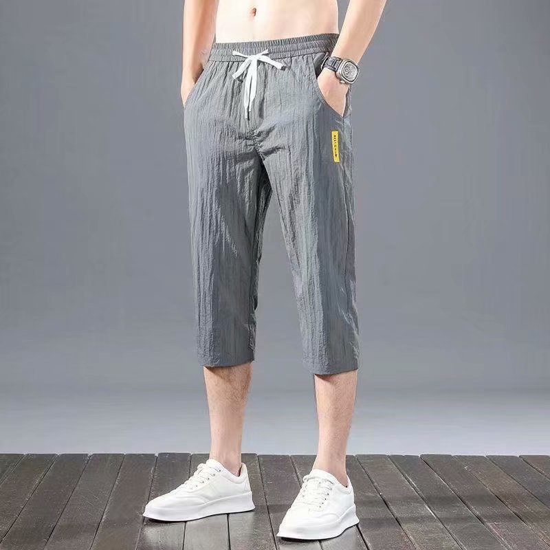 Casual shorts men's trend loose summer thin ice sports pants men's Capris beach pants