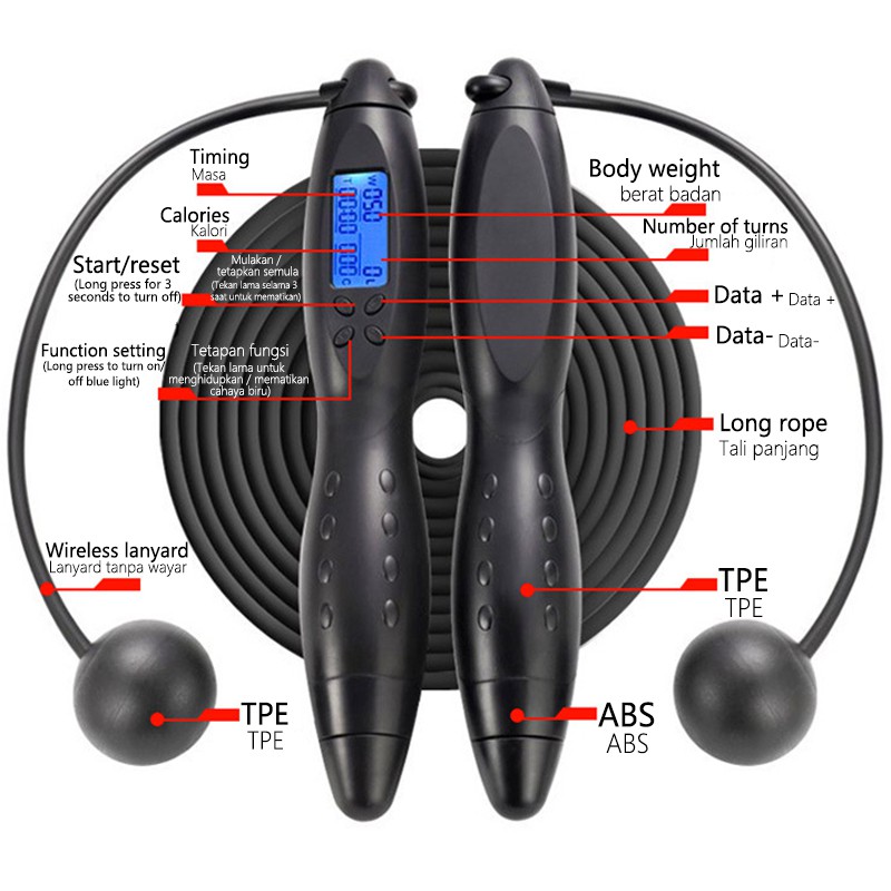 🔥【ready stock】🔥Digital Jump Rope Counting Calorie Fitness Sport Weight-bearing Skipping Ropes Workout Excercise Tool