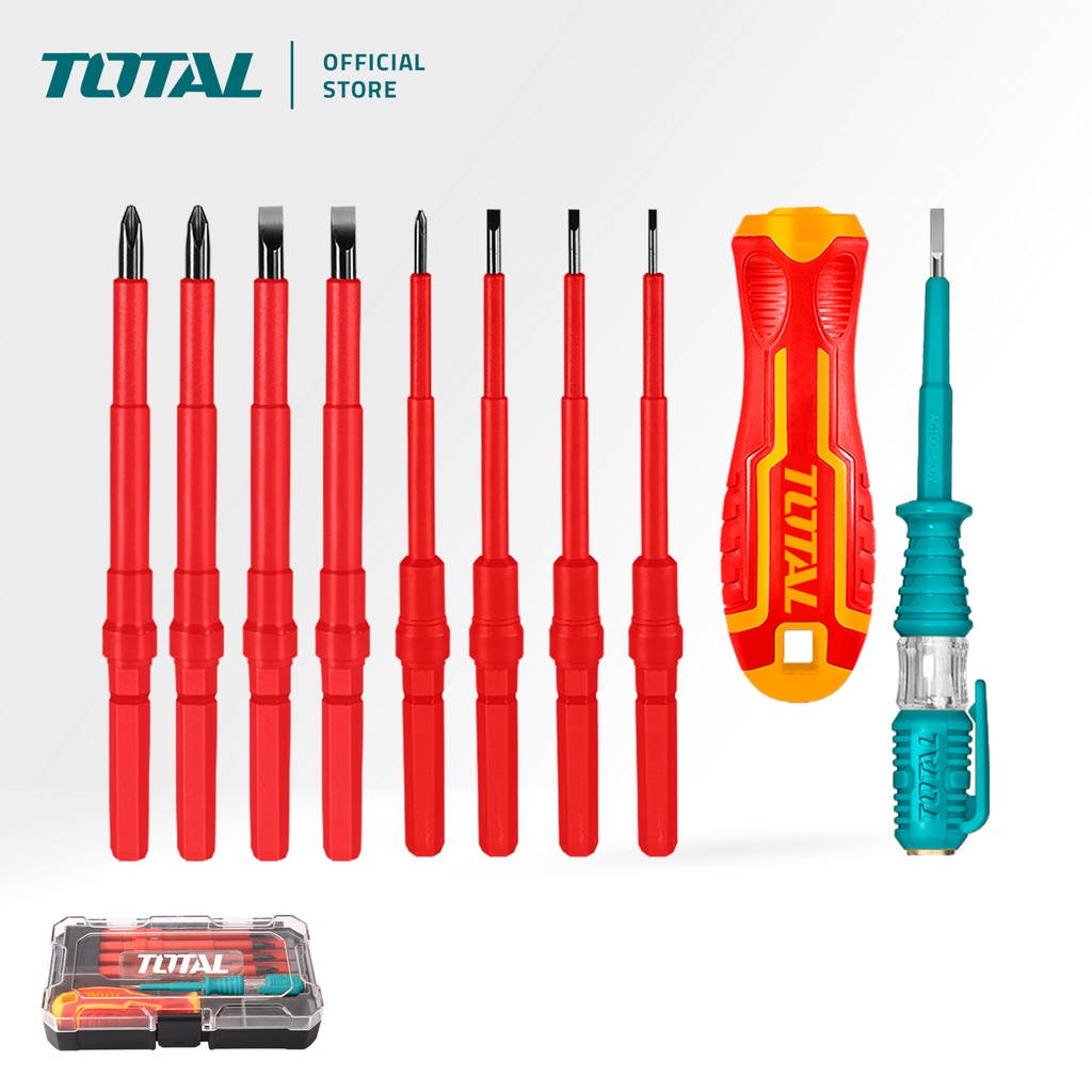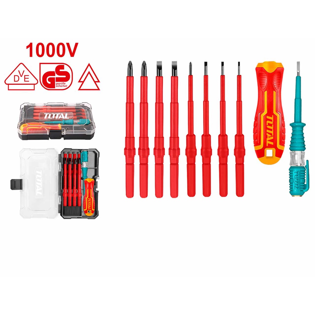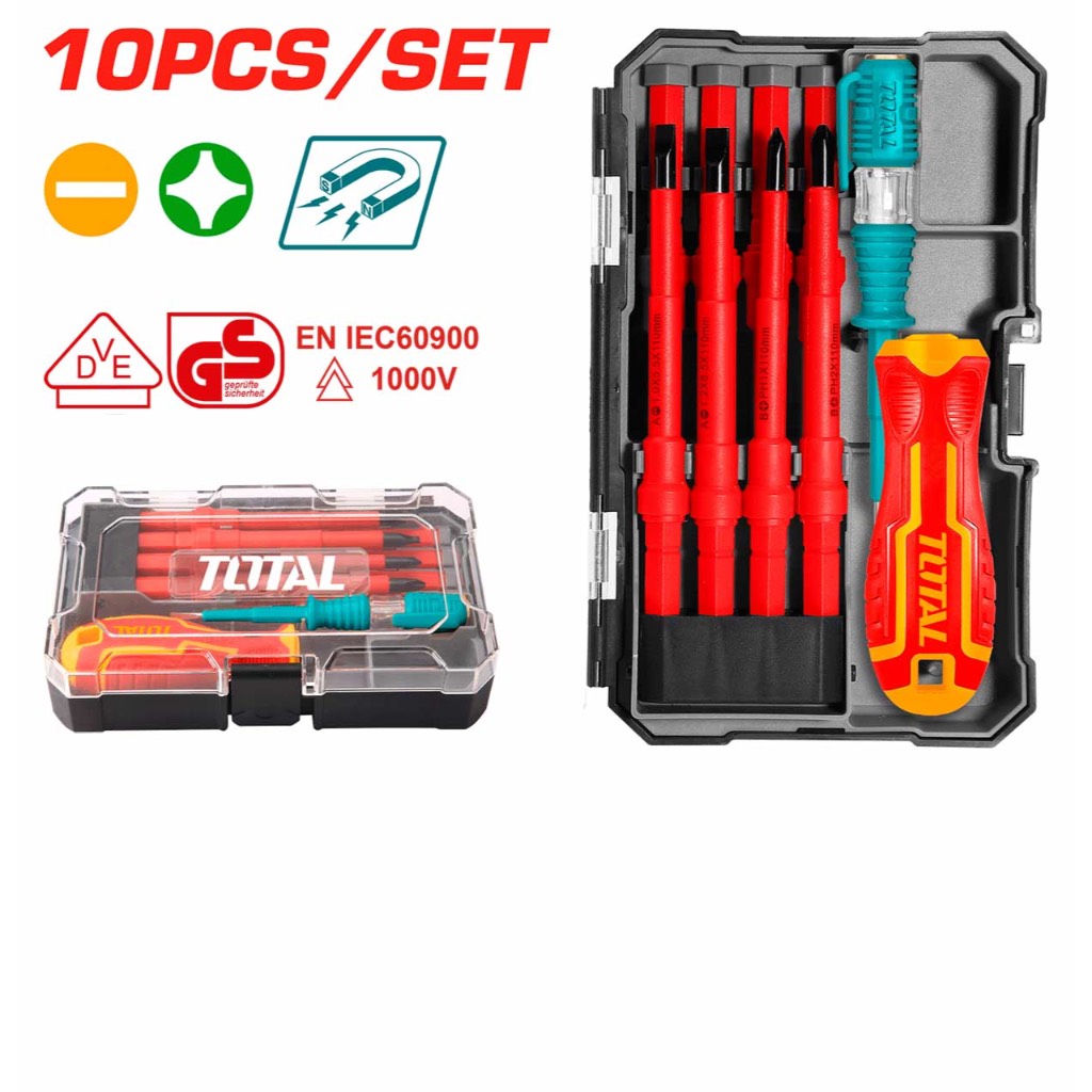 TOTAL Insulated Screwdrivers With Stackable Box Slotted/Flat + Phillips + Handle (1000V/10 Pcs) THTIS5106