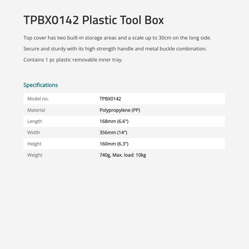 TOTAL Plastic Tool Box Removable Inner Tray (14"/356mm x 168mm x 150mm/Max Load 10kg) TPBX0142