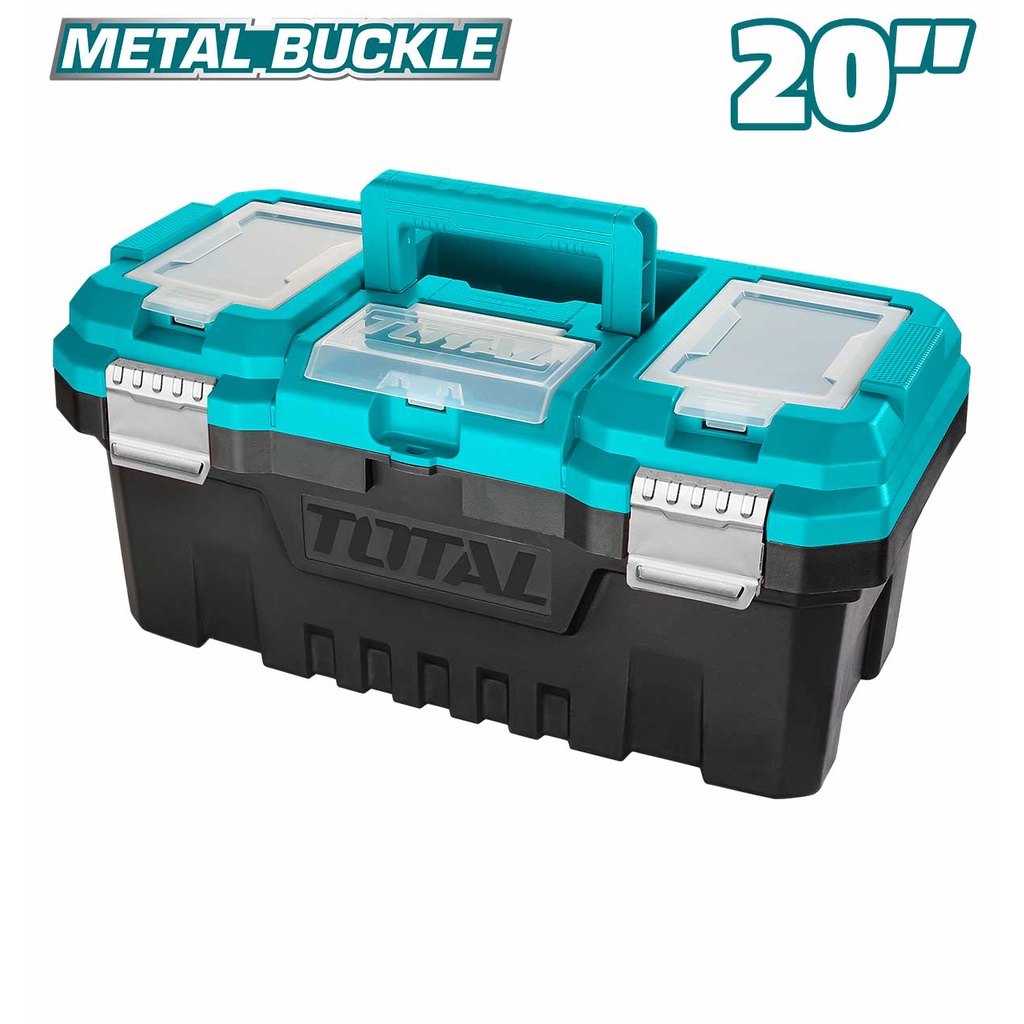 TOTAL Plastic Tool Box w/Metal Buckle + 3 Top Compartments (17"/20"/Max Load 15kg-20kg) TPBX0172/TPBX0202