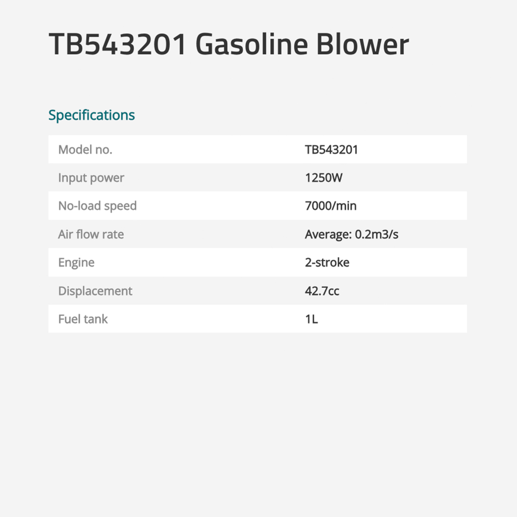 TOTAL Gasoline Blower 2-Stroke Engine Fuel Tank (1250W/Flow Rate 0.2m3/s/42.7cc/1L) TB543201