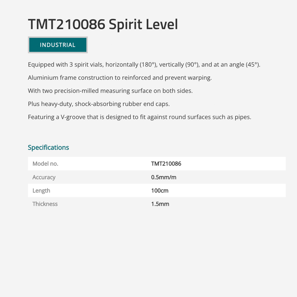 TOTAL Spirit Level With 3 Vials Milled Surfaces & V-Groove (80cm/100cm) TMT28086/TMT210086
