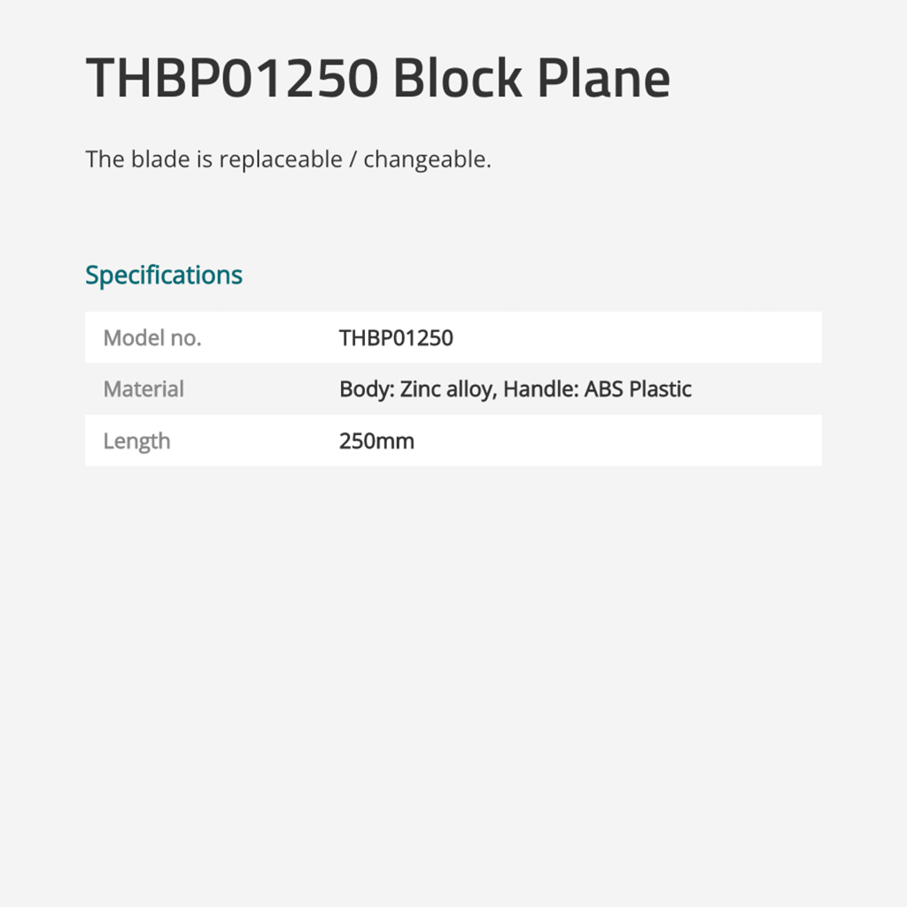TOTAL Block Plane Zinc Alloy With Handle ABS Plastic (250mm) THBP01250
