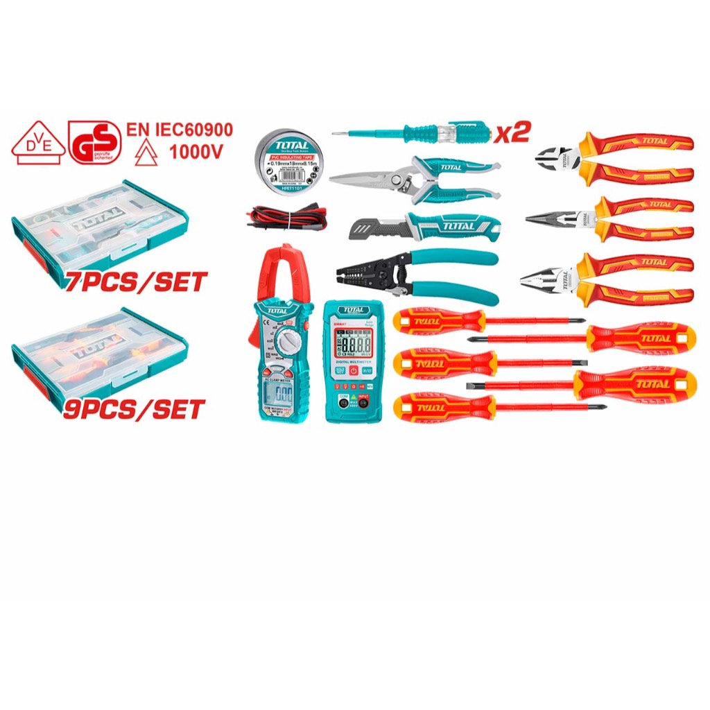 TOTAL Electrician Tools Set (16 Pcs) Multimeter + Clamp Meter + Scissors + Pliers + Screwdriver + Test Pen TOS23063