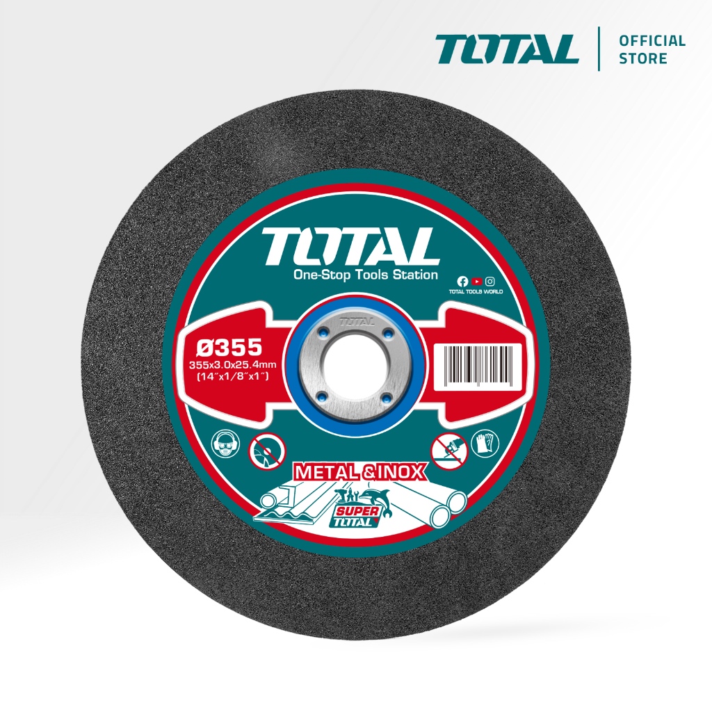 TOTAL Abrasive Metal Cutting Disc (14" / 355mm), Flat Centre w/ Double Fibre Layer, Cut Metal and INOX TAC2213551