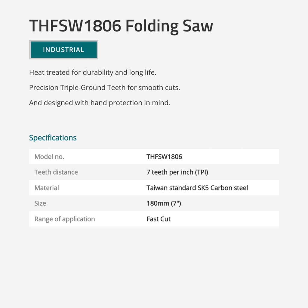TOTAL Folding Saw With Precision Triple Ground Teeth For Smooth And Fast Cuts THFSW1806