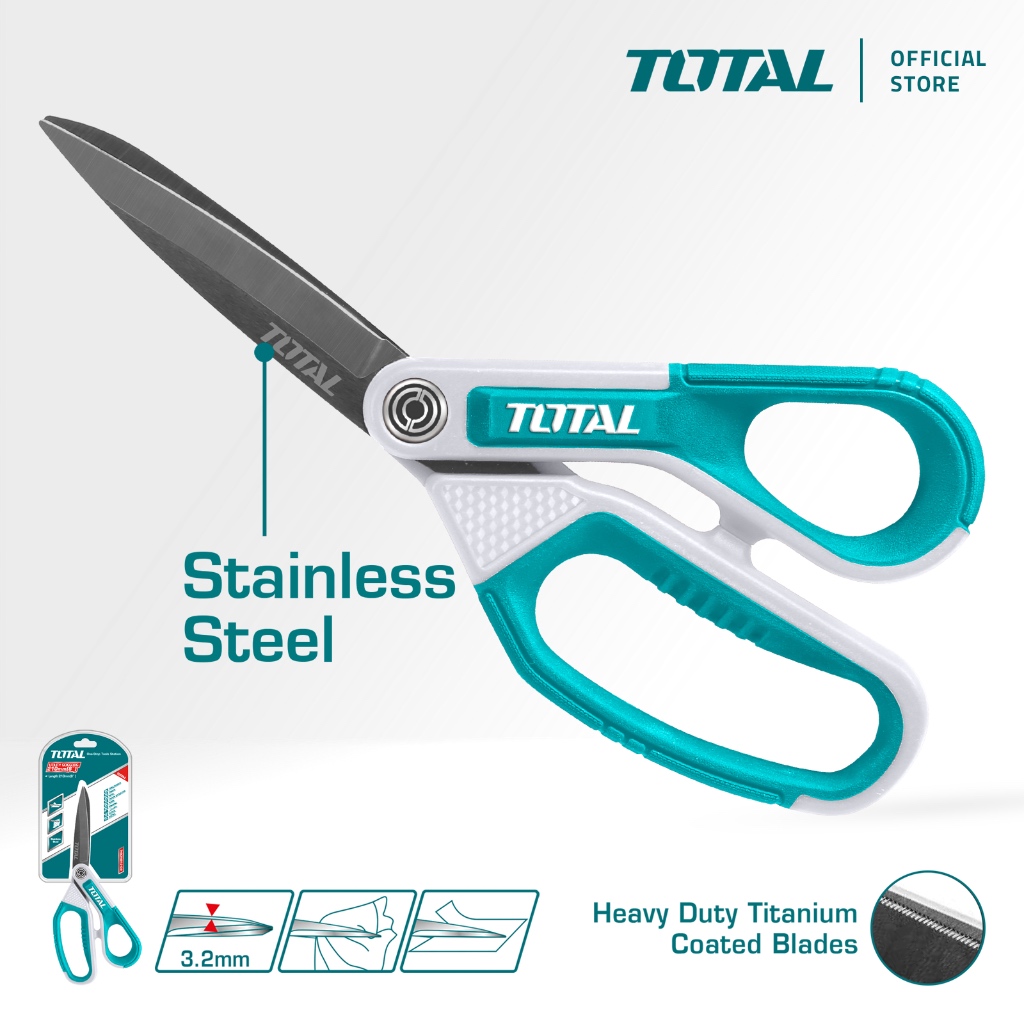 TOTAL Rubber Grip Long Blade Scissors With Serrated Bottom Blade THSCRS812108