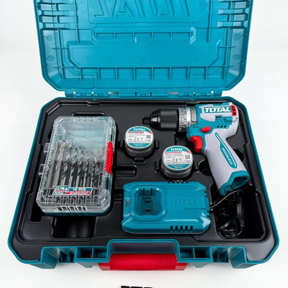 TOTAL Cordless Li-ion Impact Drill + 2 Pcs 2.0Ah Battery + Charger (M16 / 16V / 60Nm / Brushless) TOSLI241199