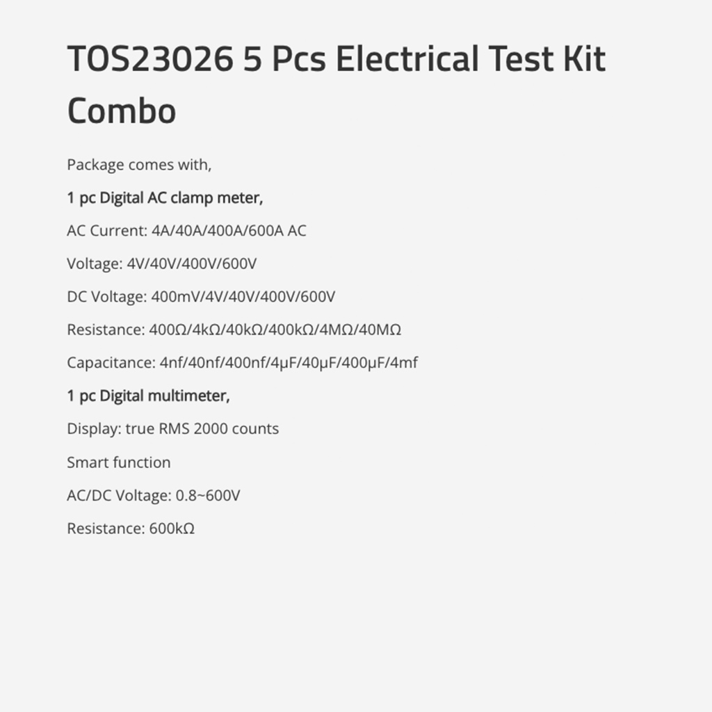 TOTAL Electrical Test Kit Combo (5 Pcs) Digital AC Clamp Meter + Multimeter + Test Pen + Thermometer + Stripper TOS23026