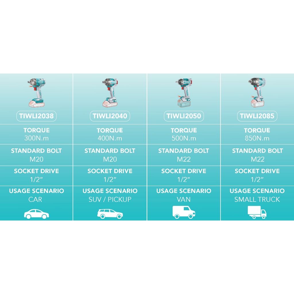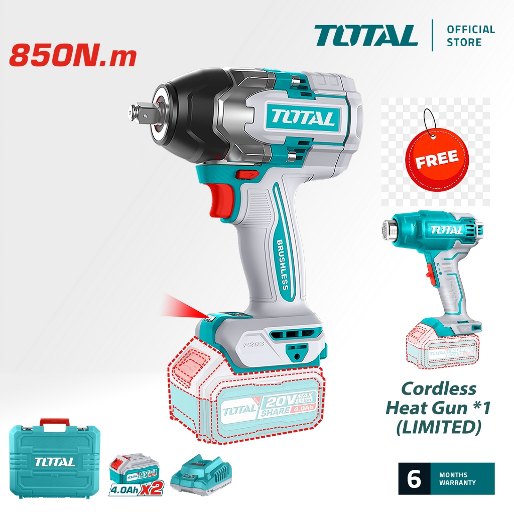 TOTAL Li-ion Impact Wrench (300-1750Nm) Brushless Motor + Battery (2 Pc) + Charger + Socket (3pcs) + 1 Year Warranty