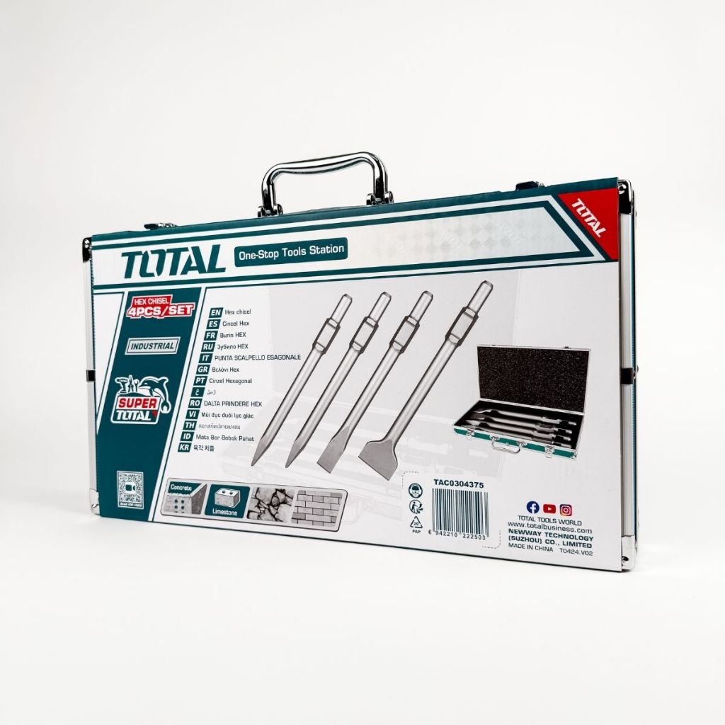 TOTAL Tools 4 Pcs SDS Hex Chisel Set (Pointed / Flat) TAC0304375