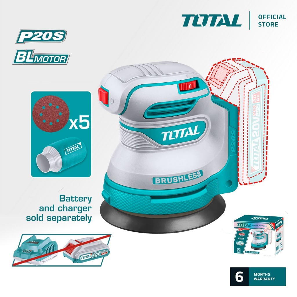 TOTAL Cordless Random Orbit Sander (5"/125mm) (20V) [Free Sanding Sheets/Sandpaper 5 Pcs] TROSLI2002