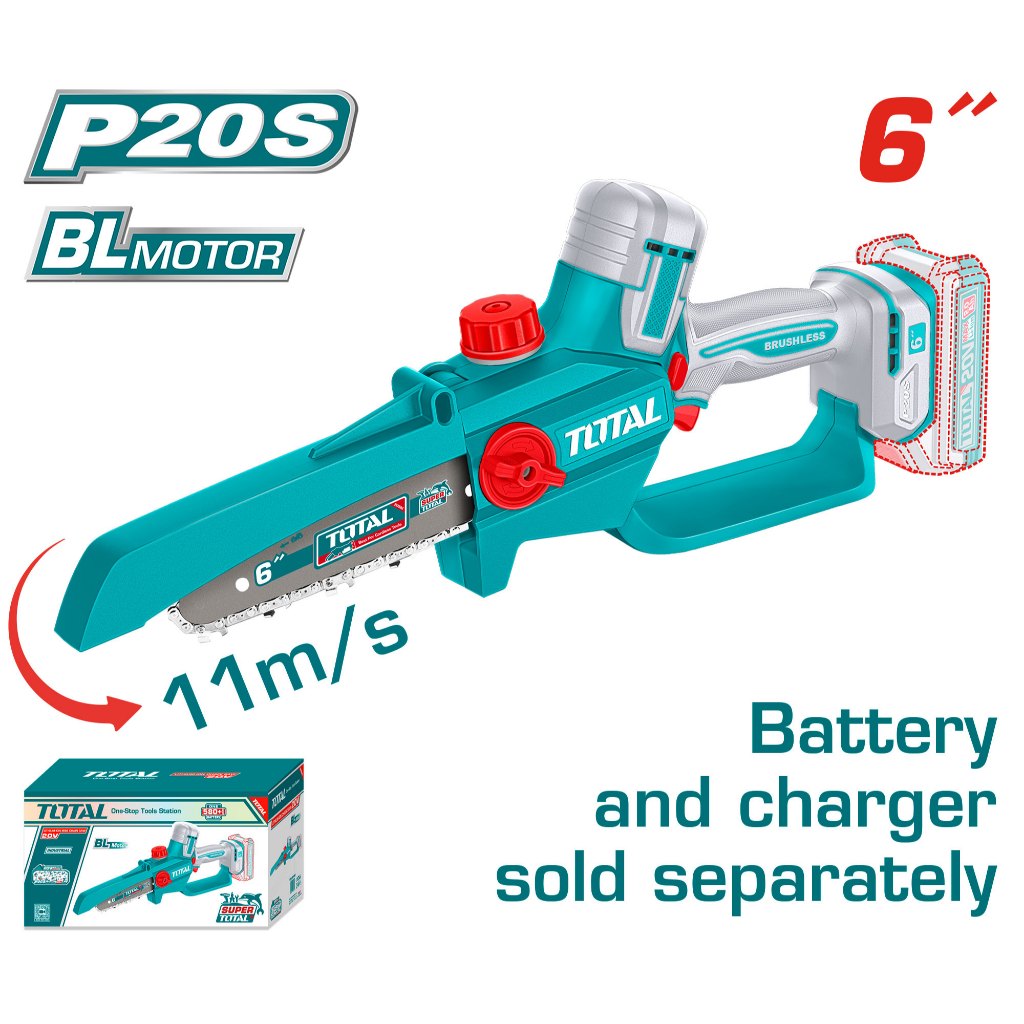 TOTAL Tools Cordless Mini Chain Saw + Battery + Charger (20V / 6" / Brushless) TGSLI2066 / TGSLI20662