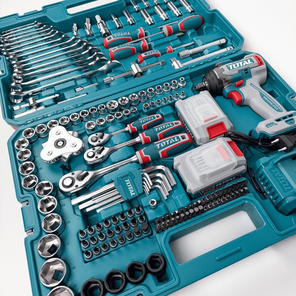 TOTAL 172 Pcs Tools Set with Cordless Li-ion Impact Wrench (P20S / 20V / 550Nm / Brushless) THKTHP41728
