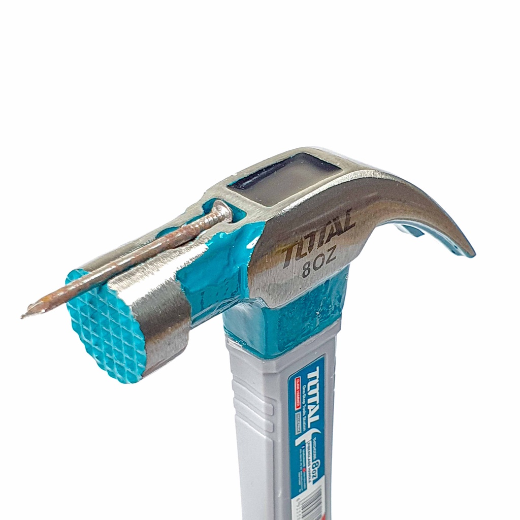 TOTAL Claw Hammer (220g, 450g / 8oz, 16oz) Slot w/ Magnet As Nail Holder, Carbon Steel Head THCH61008 / THTCH0166