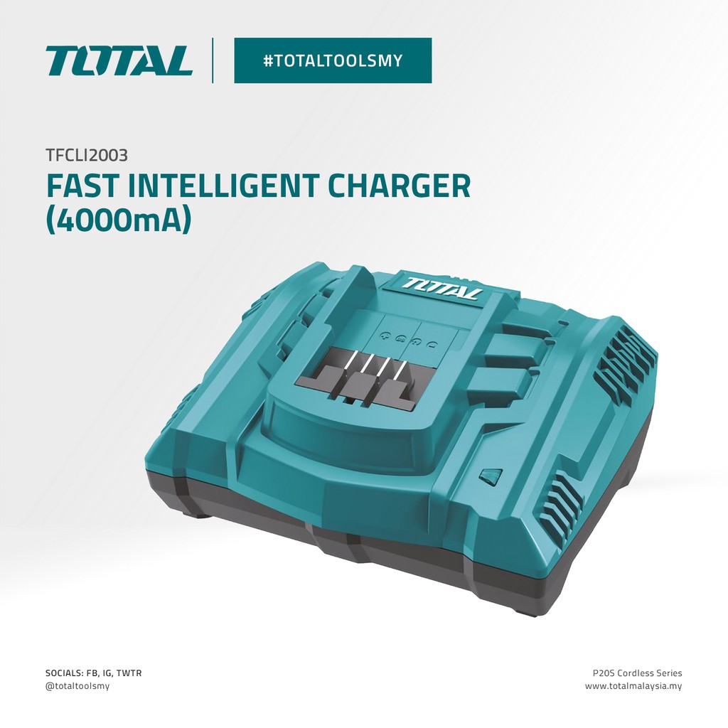 TOTAL Fast Intelligent Charger Quick Charge 4.0Ah Battery In 1 Hour (4000mAh/20V) P20S TFCLI2003