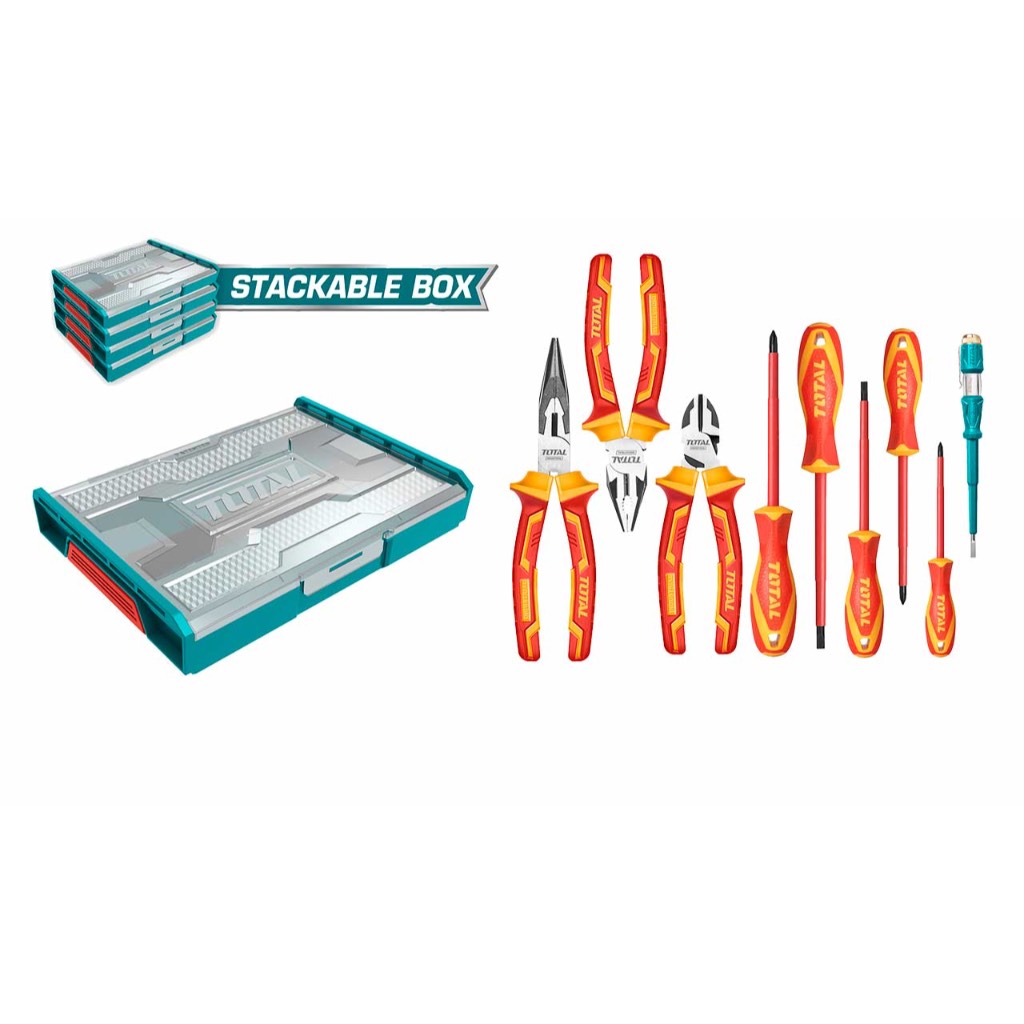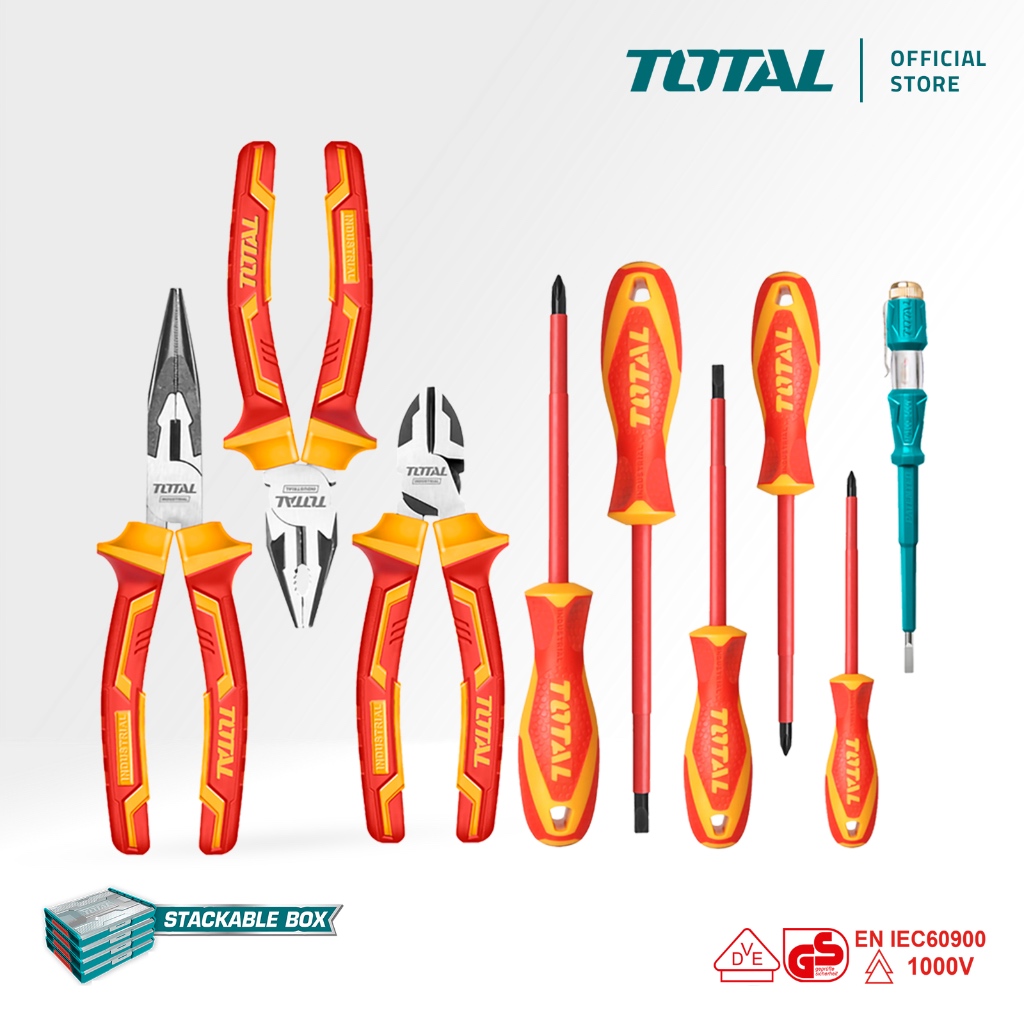 TOTAL Insulated Hand Tools Set (9 Pcs) Pliers (Long Nose/Diagonal/Combination) + Screwdriver + Test Pen THKTV02H091