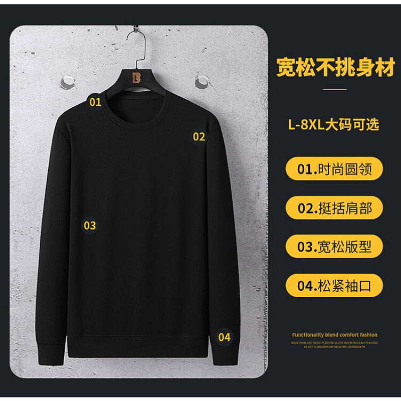 L-8 XL Plus Size Solid Color Men's Thin Crew Neck Sweater Loose Men's Thin Crew Shirt