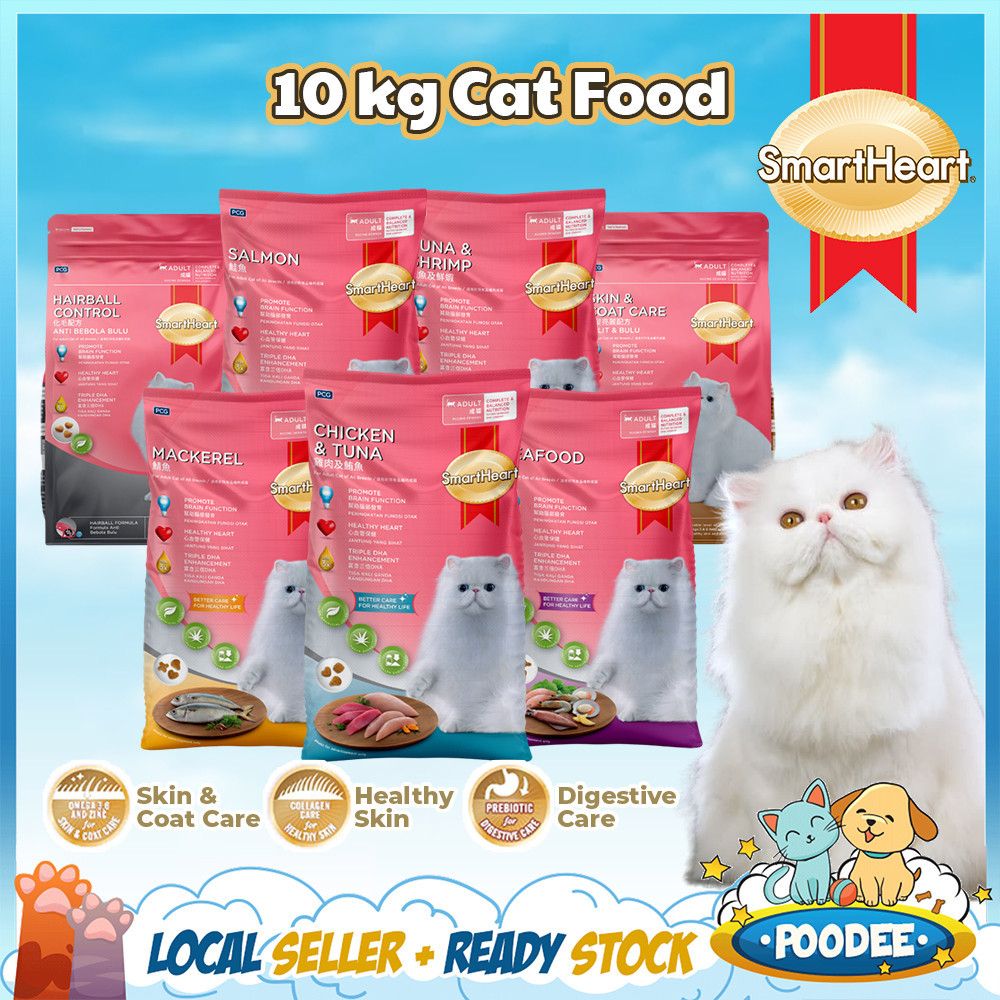 POODEE PETS SmartHeart Dry Cat food Kibbles Chicken Tuna Salmon Hairball Makanan Kucing 10kg Smartheart 10kg 猫粮