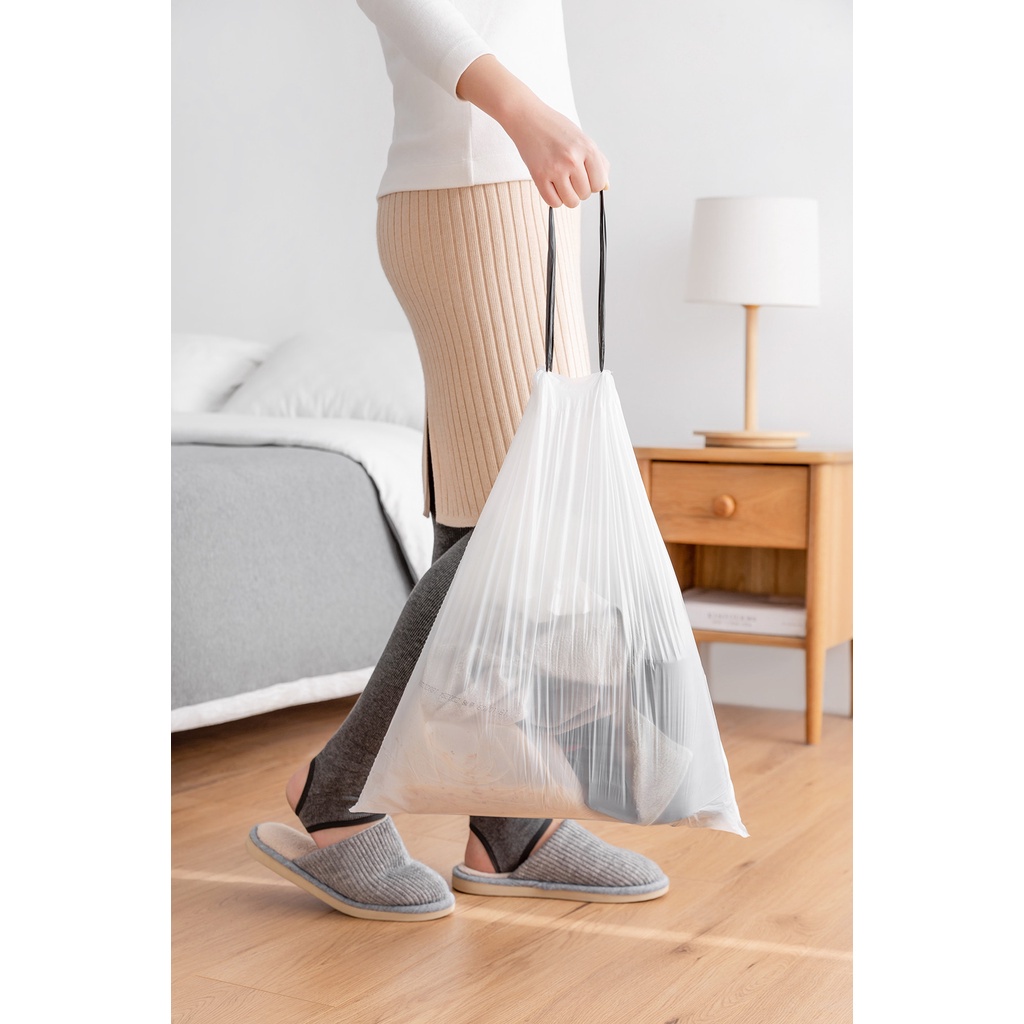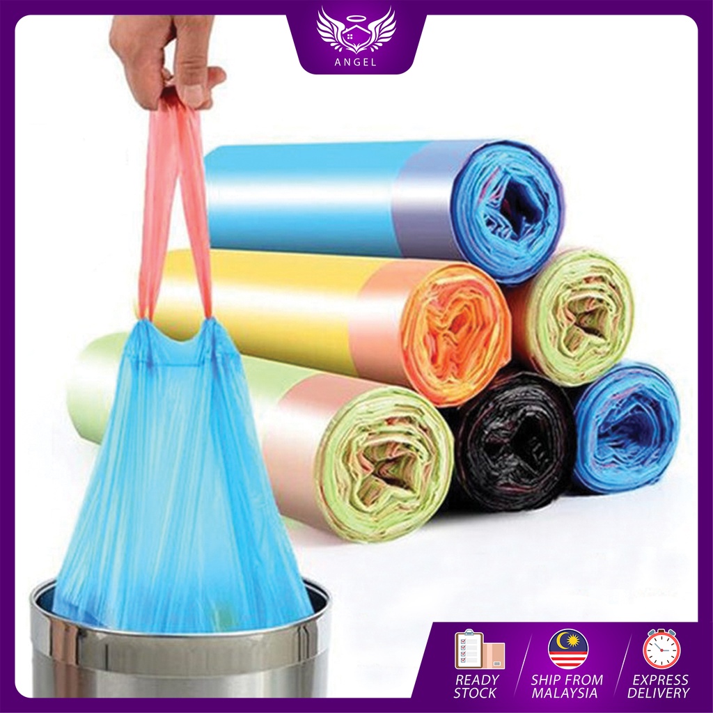 ANGEL (New Material) Biclean Garbage Office Cleaning Trash Bags Dustbin with Rope (15pcs/Roll) (NOT BLACK Plastic)