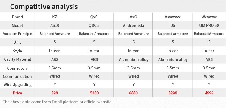 KZ AS10 In Ear Earphone 5BA Balanced Armature Driver HIFI Bass Headset Sport IEM