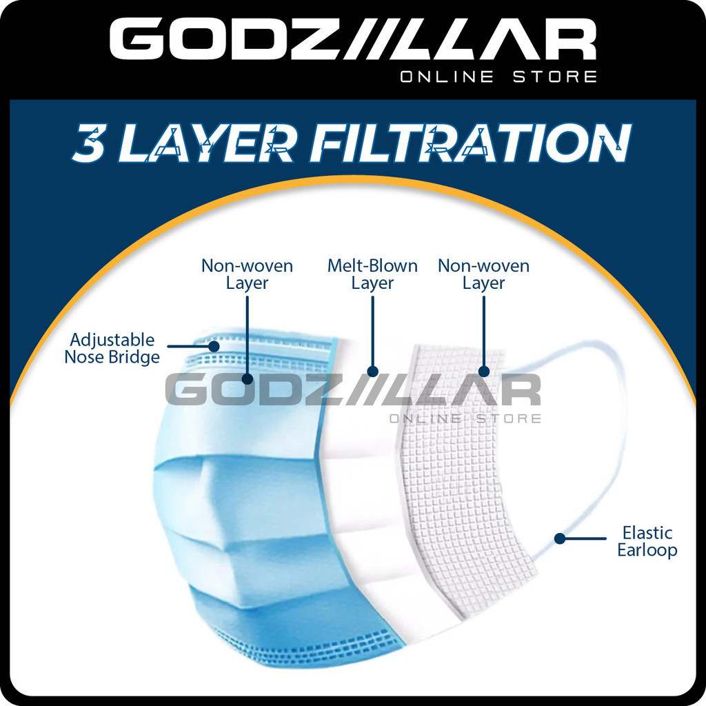 3ply Face Mask | Earloop | Blue / Black / White | Ship From Selangor