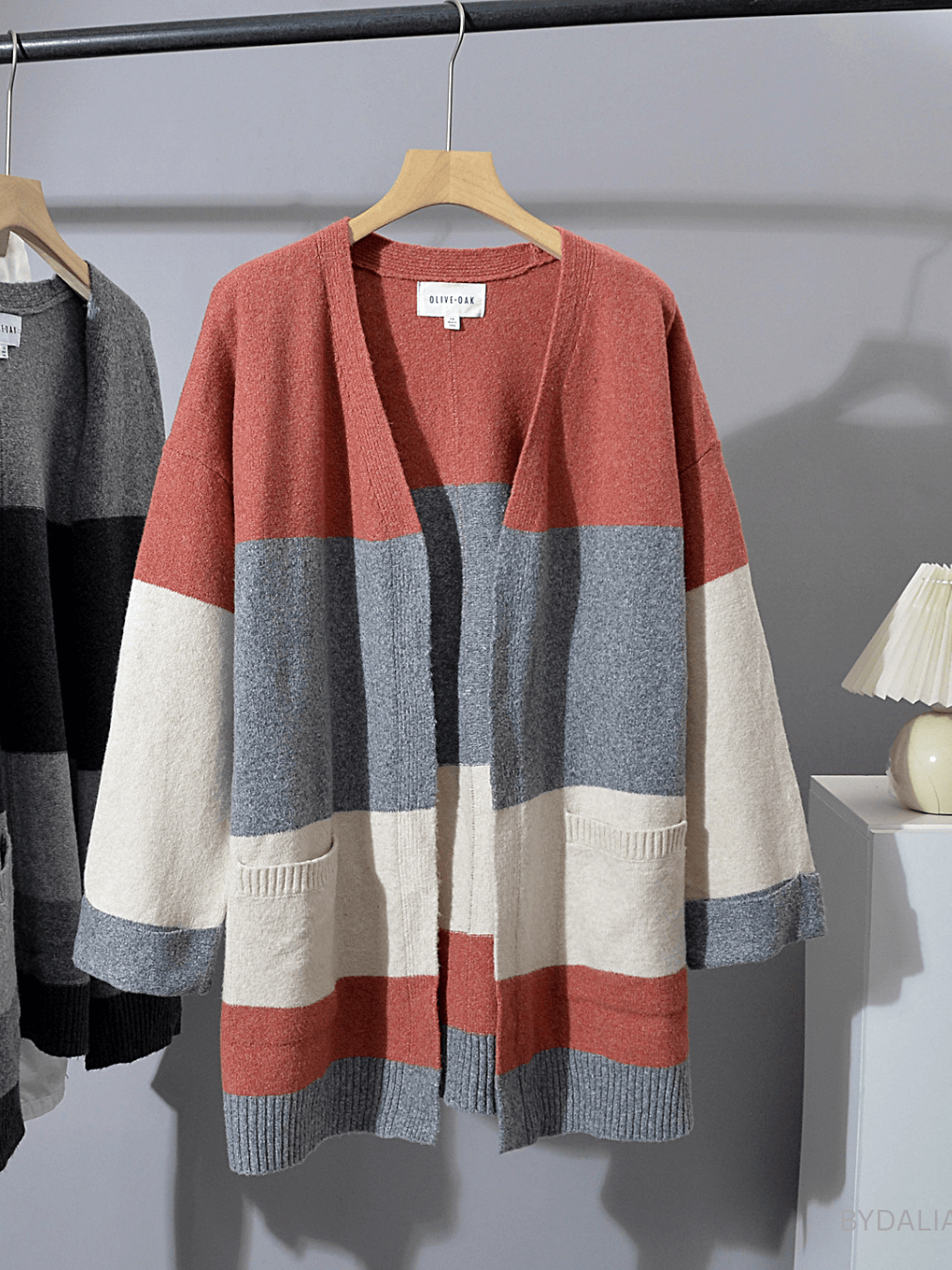 BYDALIA Arlene Plus Size color-blocked striped knit cardigan