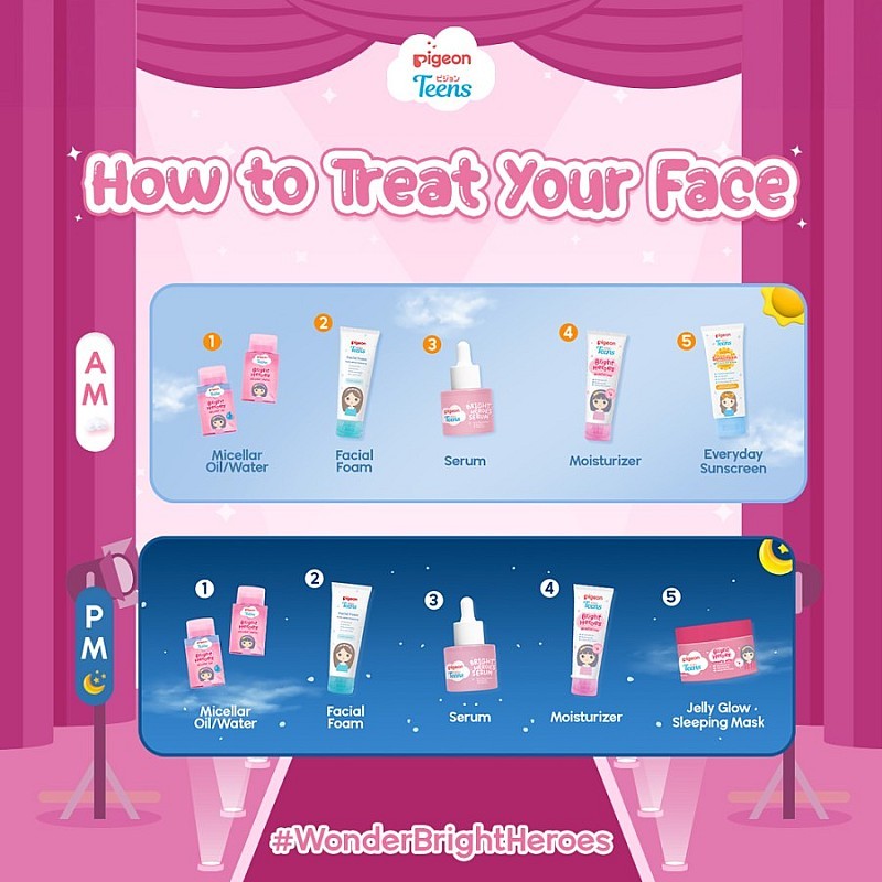Pigeon Teens Bright Heroes Powder Toner/ Moisturizer/ Micellar Oil Water/ Sleeping Mask/ Serum/