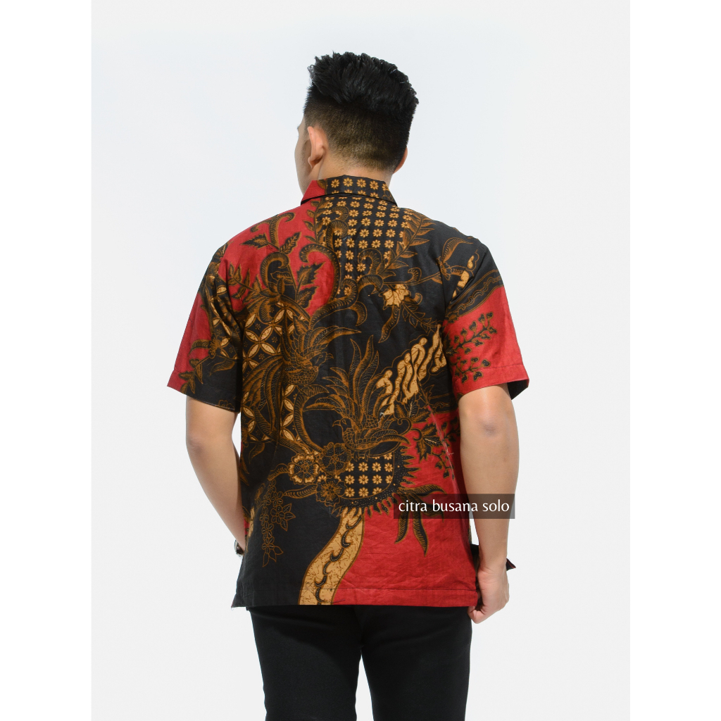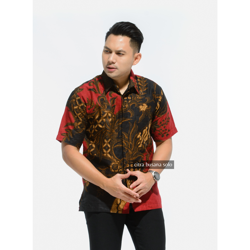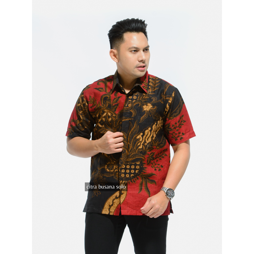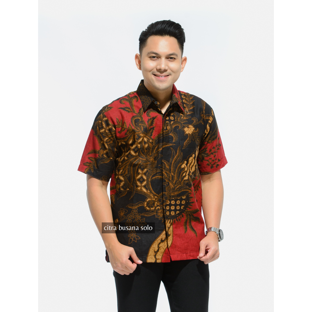 KATUN MERAH KEMEJA JAYANEGARA RED SHORT Men's Batik Shirt Full Lining Primisima Cotton Material