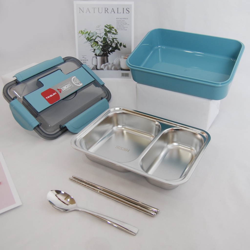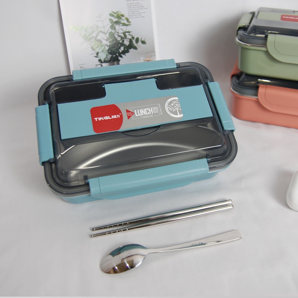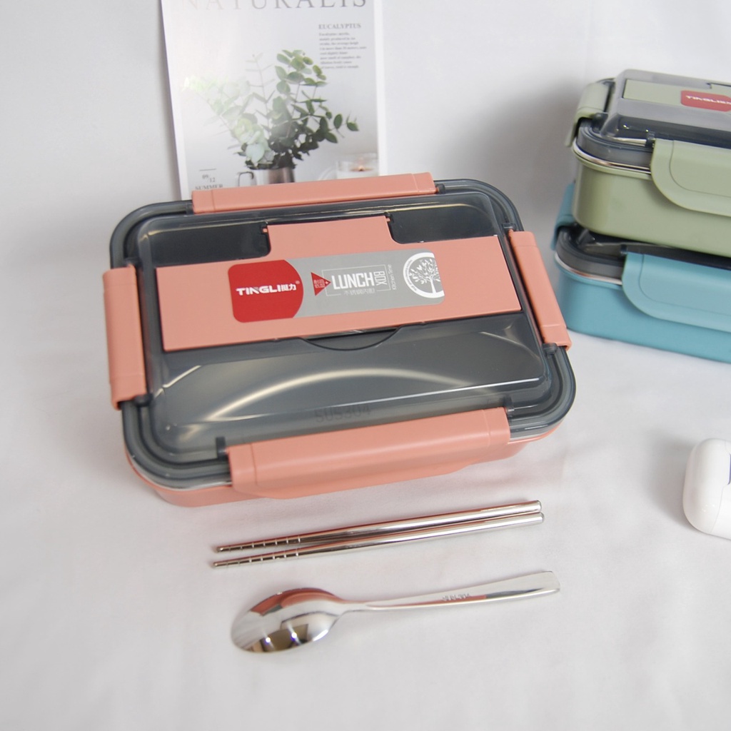 TINGLI Rectangular Stainless Steel Lunch Bento 2 compartments/ 3 640ml TL8175/TL8176