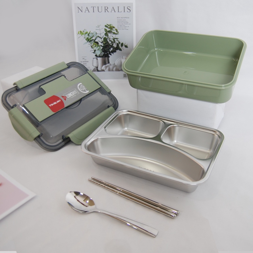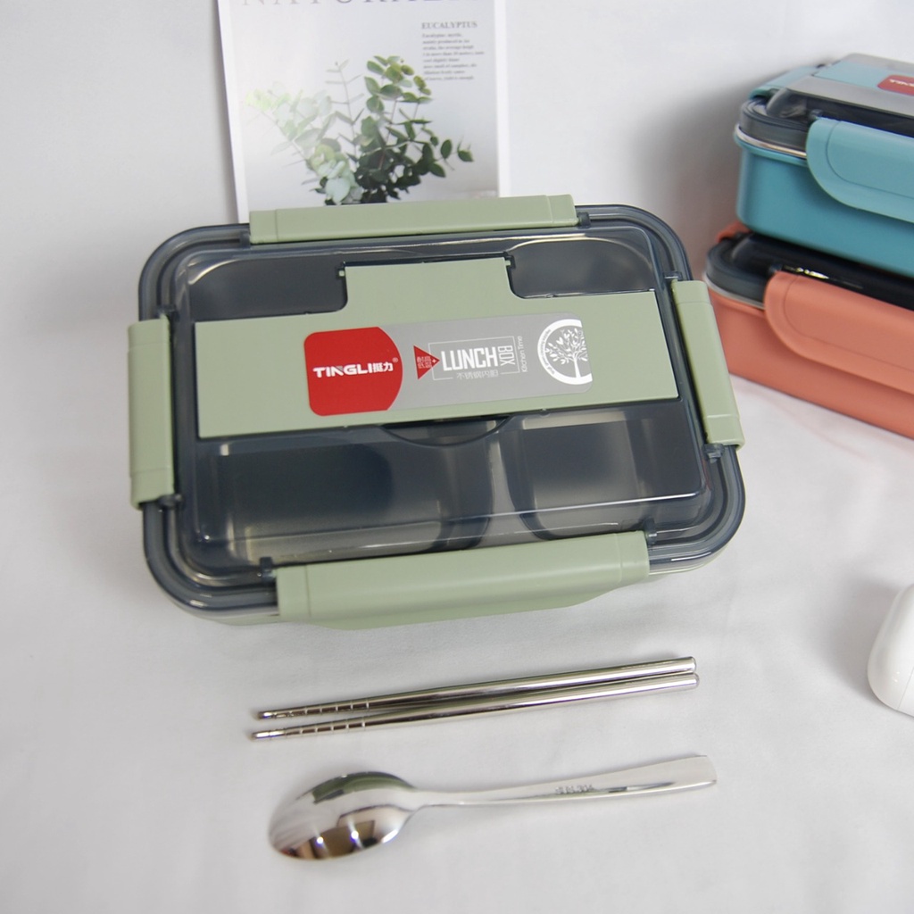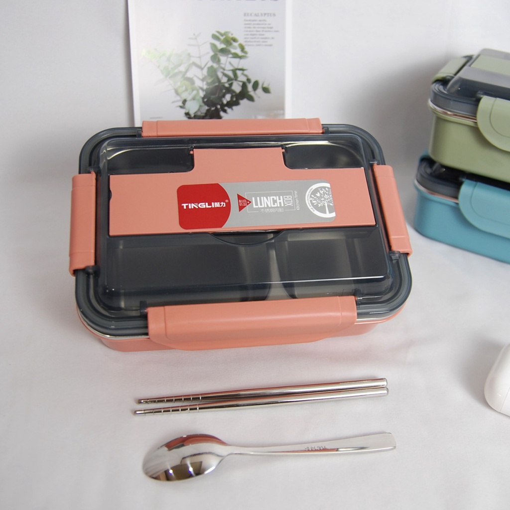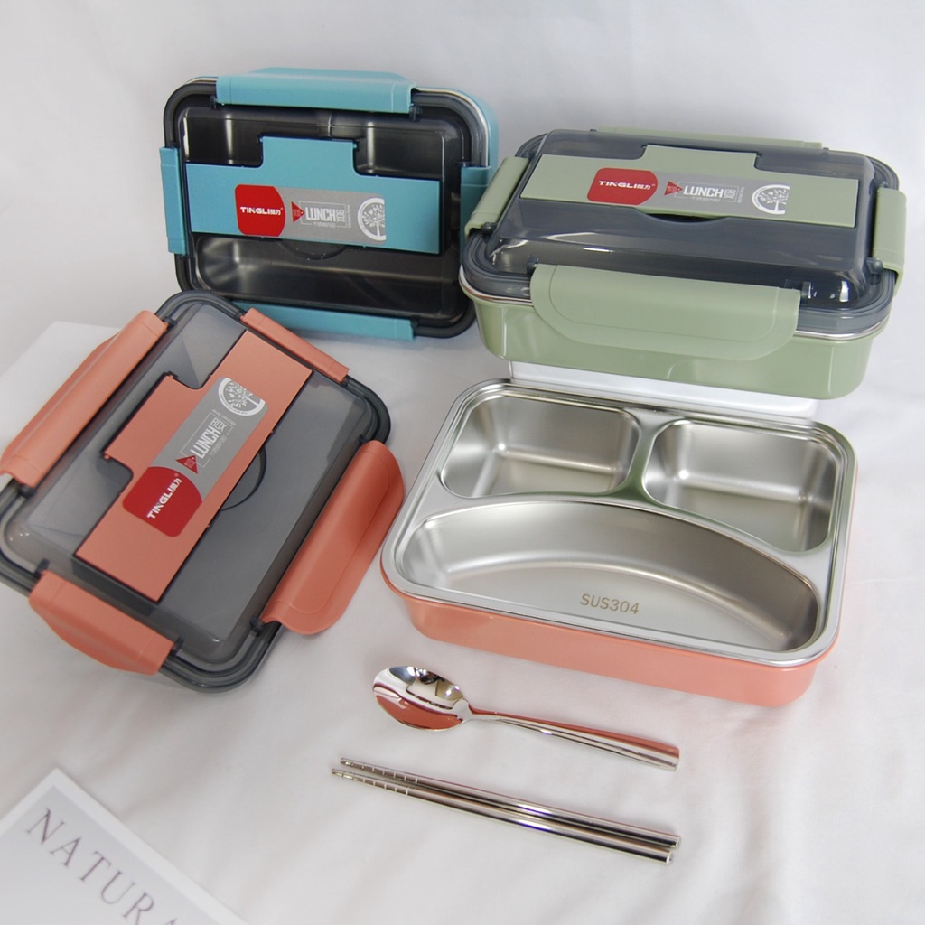 TINGLI Rectangular Stainless Steel Lunch Bento 2 compartments/ 3 640ml TL8175/TL8176