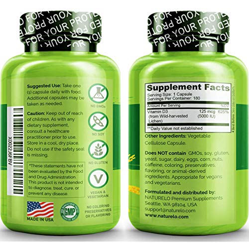 NATURELO Vitamin D - 5000 IU - Plant Based from