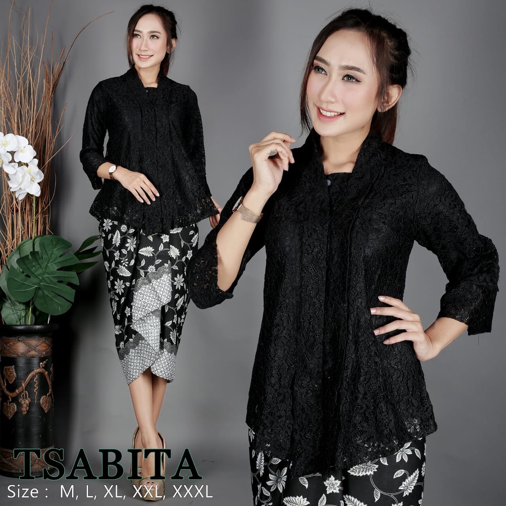 Floy Brocade Kebaya Set Black Floy Brocade/ with Wrap Skirt Bottom