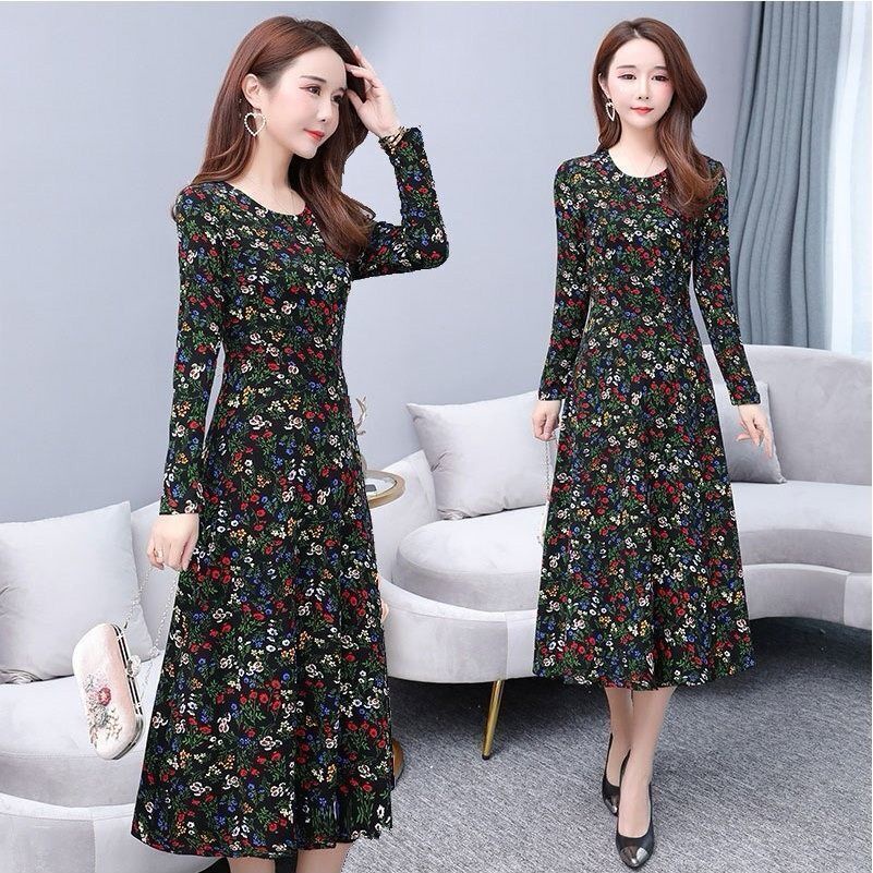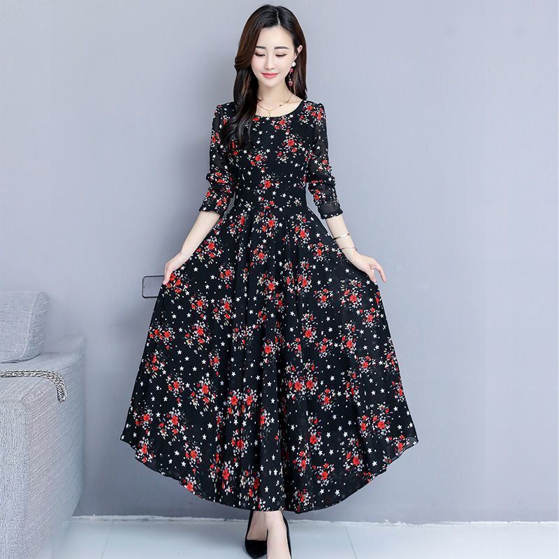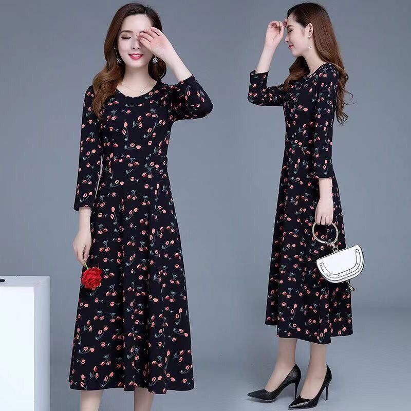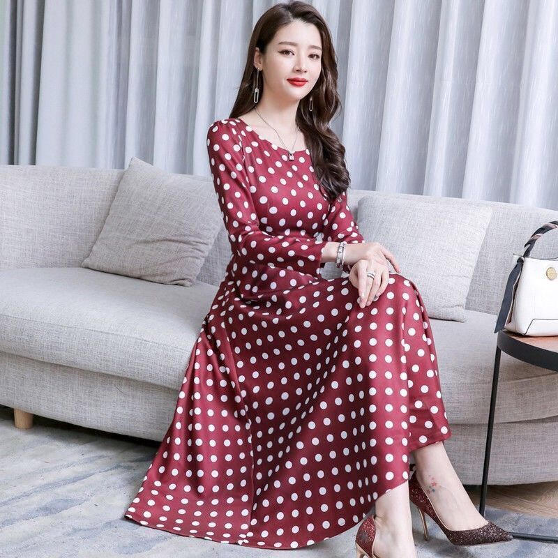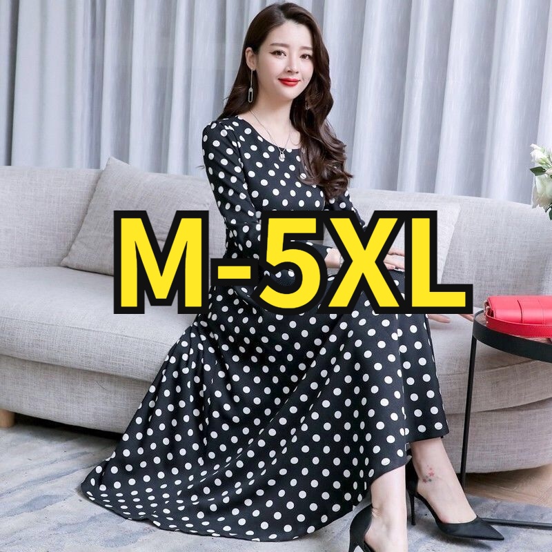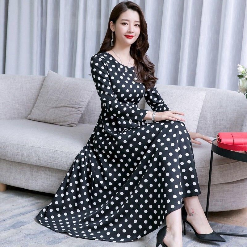 [40-90kg Can Wear] Temperament Women's Long Skirt Summer New Style Polka Dot Dress Mid-Length Slim-Fit Slimmer Look Ready Stock