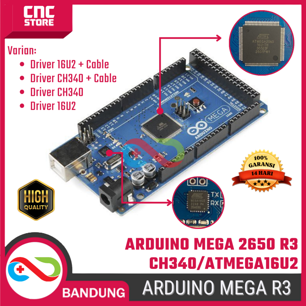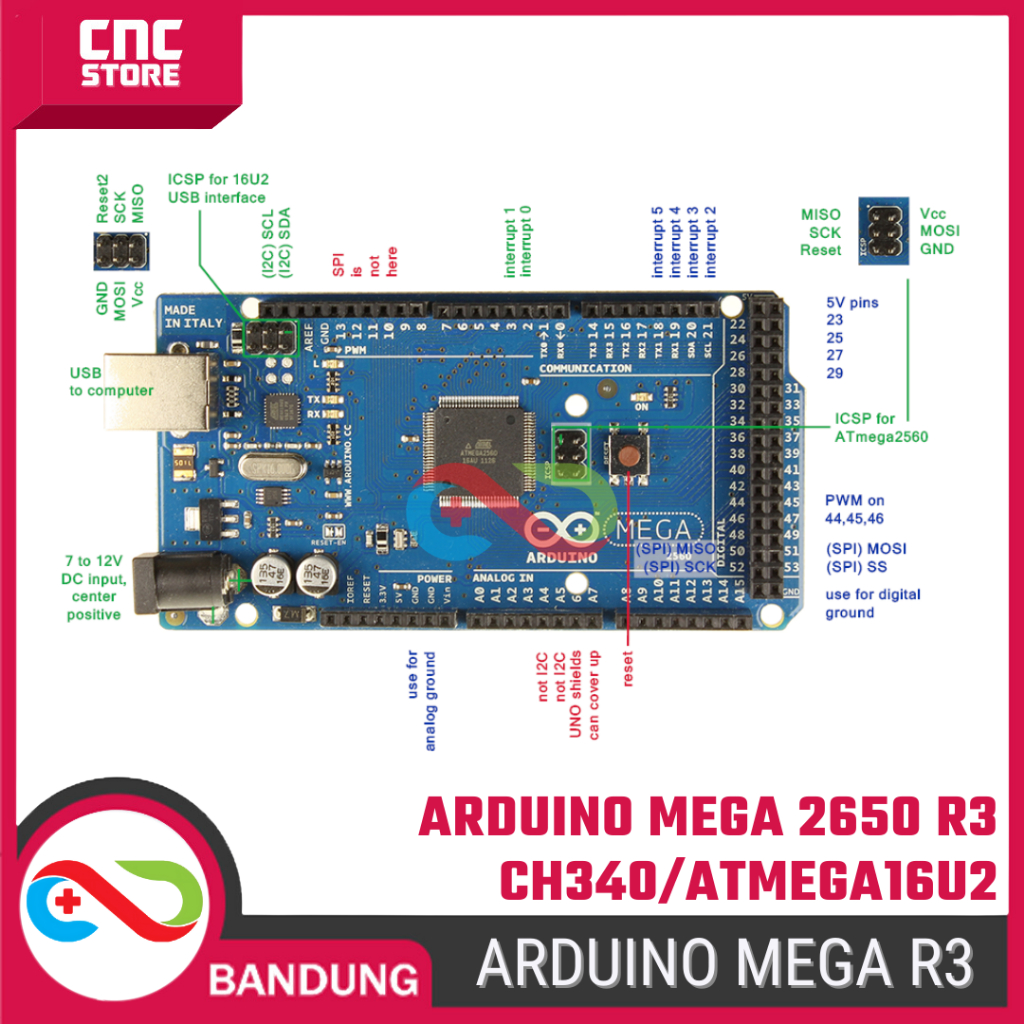 Arduino Mega 2560 R3 Development Board – CH340/ATmega16U2 + USB Cable – Compatible Robotic & Automotive Projects