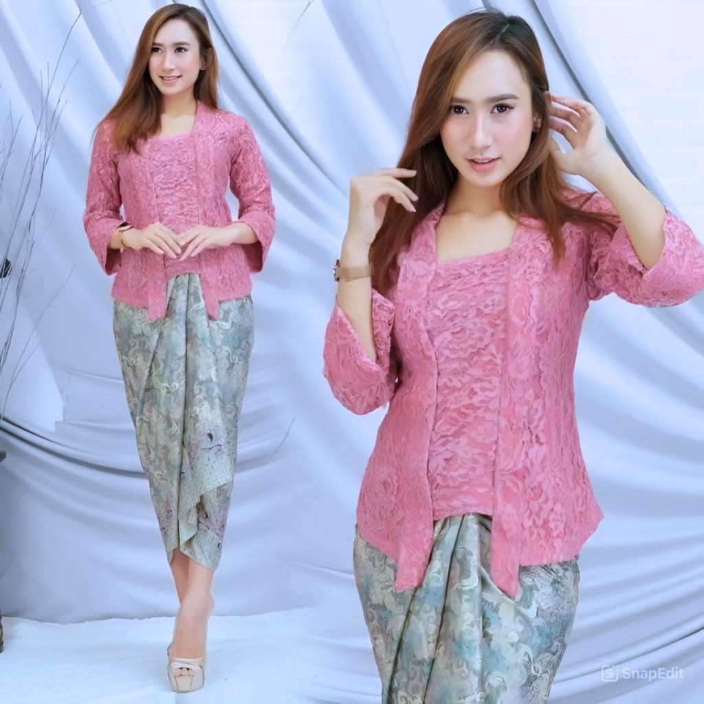 Brocade Kebaya Set, Modern Kutubaru Dusty Pink Kebaya Set and Other Wrap Skirt