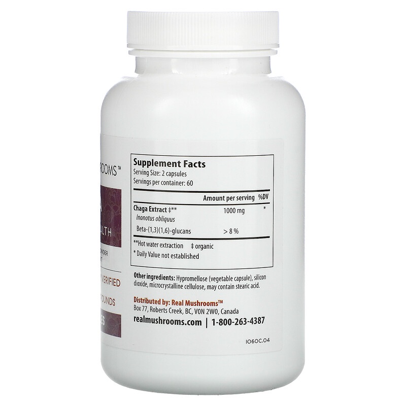 Real Mushrooms, Chaga, Mushroom Extract Powder, 120 / 300 Capsules