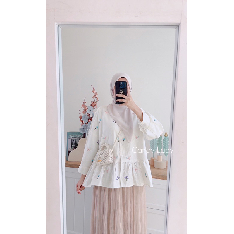 CANDY LADY Ansara Embroiderry Blouse Latest Women's Linen Top Premium Embroidered Nursing Blouse/