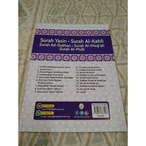 Surah Yasin.Surah Al-Kahfi,Surah Ad-Dhukan.Surah Al-Waqi'ah Surah Al-Mulk(Kumpulan 5 Surah)