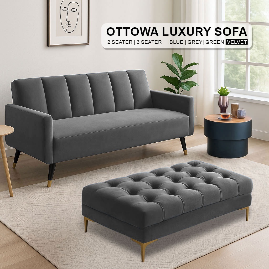 ⚡️LIKE BUG⚡️Ottowa Luxury Sofa Royal Velvet Fabric / 3 seater sofa / 2 seater sofa / sofa set