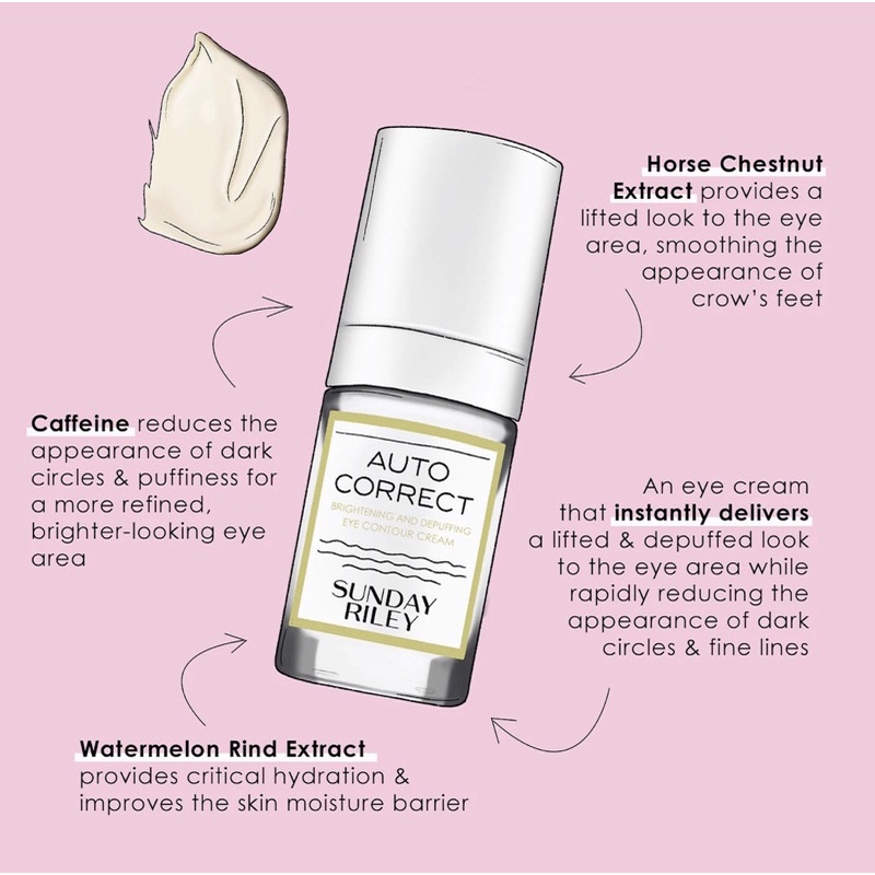 Sunday Riley Auto Correct Brightening + Depuffing Eye Cream for Dark Circles 💯 Authentic