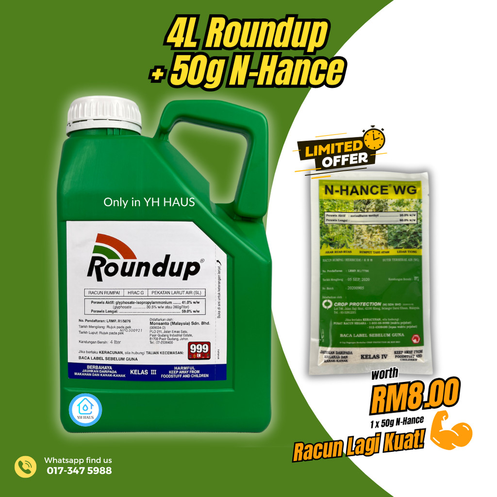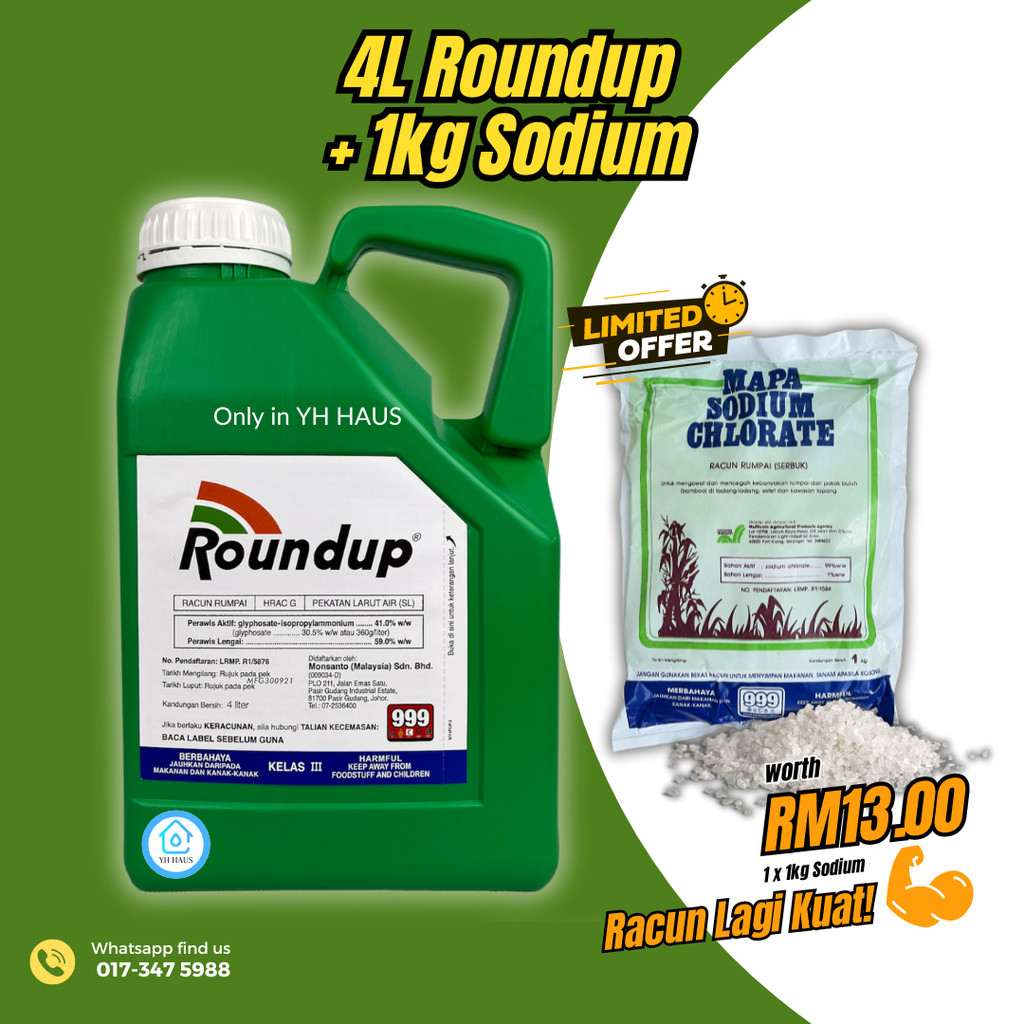 4L Roundup Glyphosate 41% Weed Killer (Racun Rumput Lalang/Ubat rumput/Racun Rumput Rumpai) grass killer cepat mati