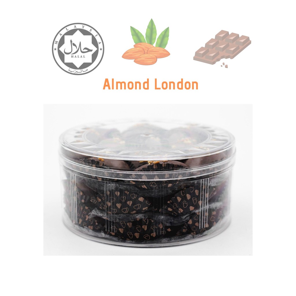 🌙KUIH RAYA⭐️Almond London Cookies Chocolate Badam Sebiji ( HALAL ) Biskut Raya / Coklat Koki Kokis / Kuih Raya BSH ENAK