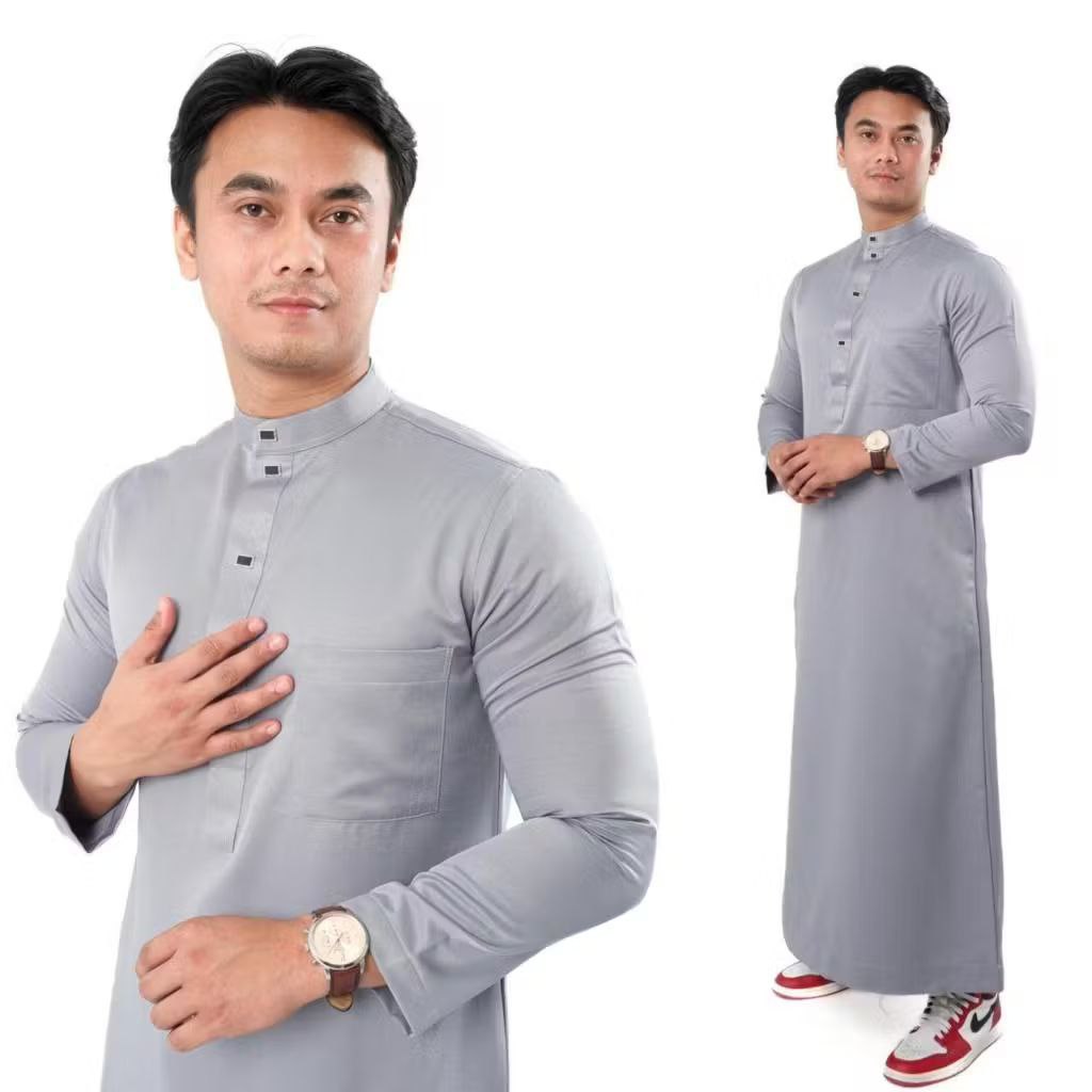 Men's Alzan Robe / Non Cuff Al-Zan Robe / Al - Zan Men's Gamis / Muslim Men's Gamis / Oblong Long Sleeve Robe / Latest Model Premium Men's Robe / Plain Jubbah / Square Button Robe / Gamis Robe Latest Muslim Men / Men's Slimfit Robes