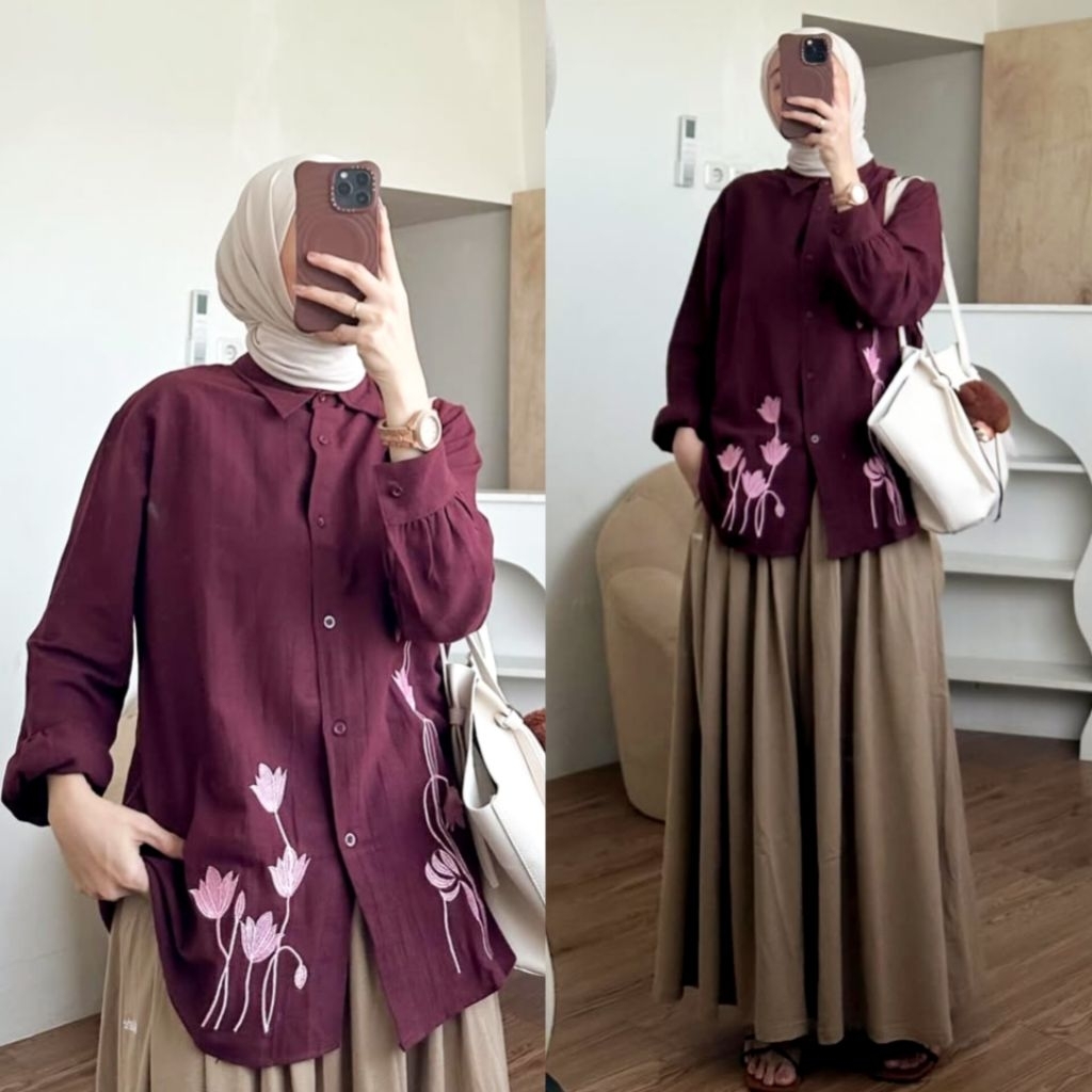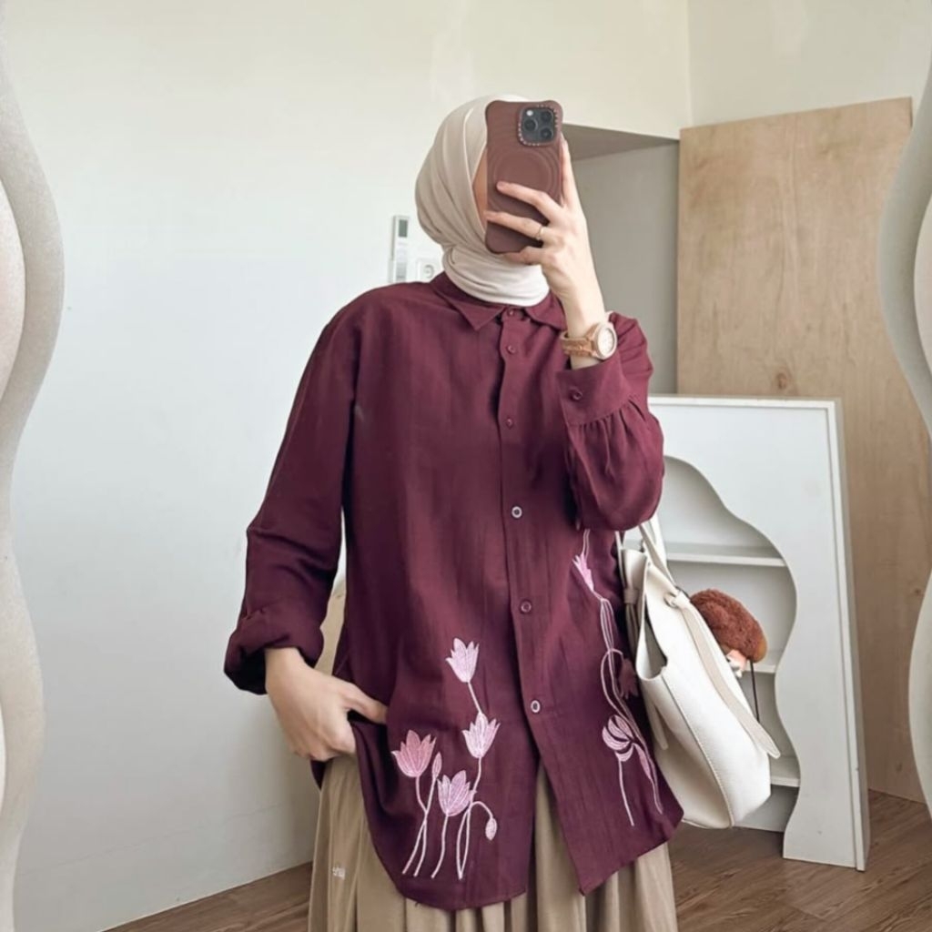 CHIVA BLOUSE EMBROIDERED RAYON TWILL Blouse Women Casual Blouse