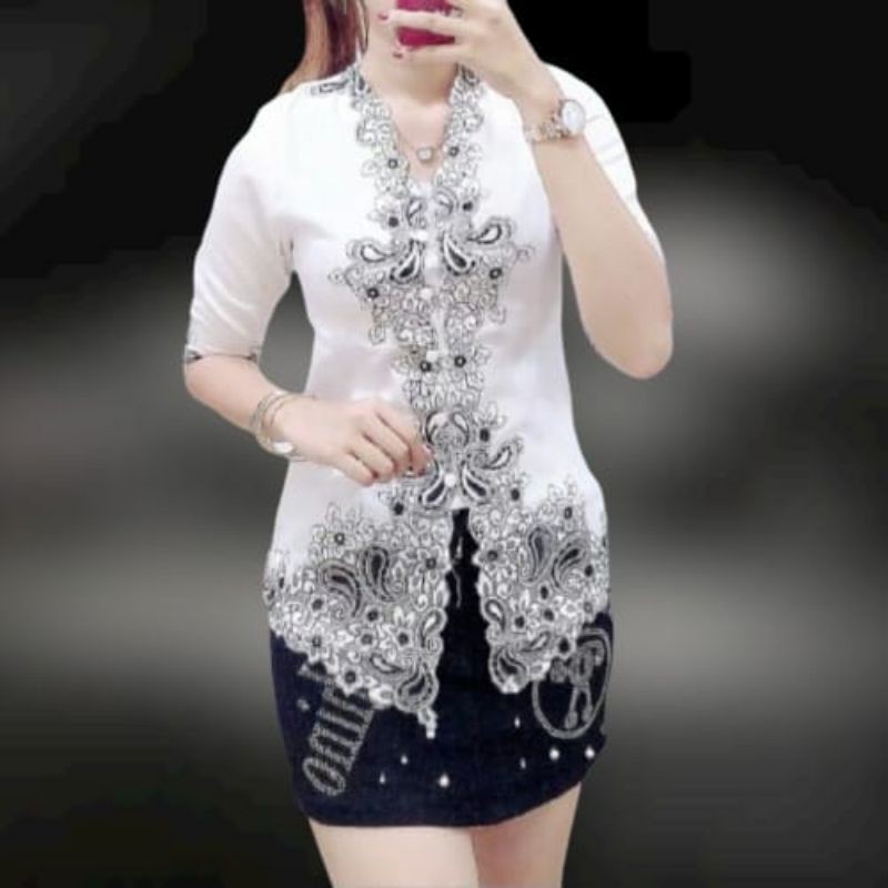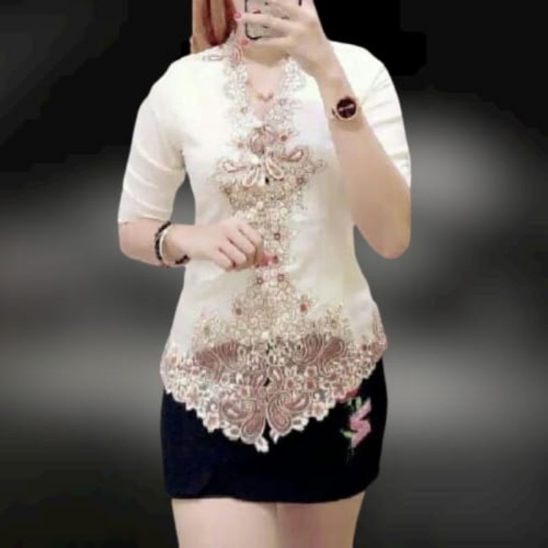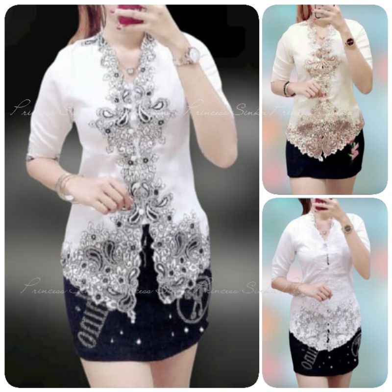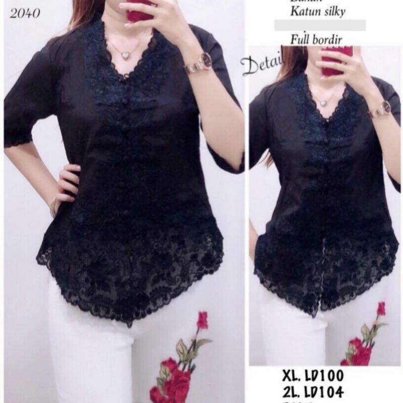 Modern Silky Korean Encim Kebaya Top with full Lining and Brocade Combination Kebaya Nyonya Kebaya Indonesia Baju Kebaya Cheongsam Top Cheongsam Blouse