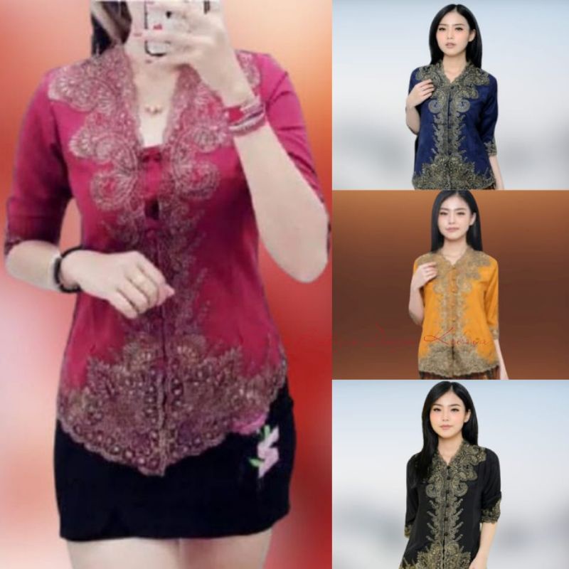 Modern silky Korean imported Encim kebaya with lace embroidery application kebaya sulam kebaya lace kebaya manik lace kebaya nyonya