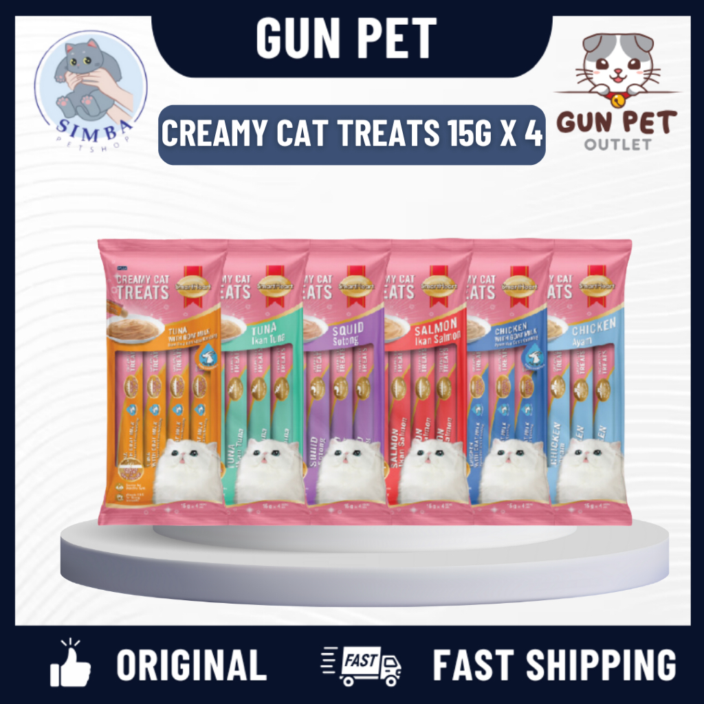 GUN PET SMART HEART Creamy Cat Treat Treats 15g * 4 Snack Stick MEO ME-O makanan ringan kucing 猫条